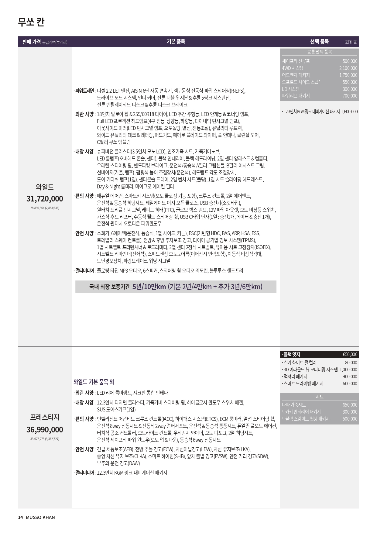 마지막으로 무쏘 스포츠 및 무쏘 칸 가격표 및 카탈로그 원본을 아래에 공유드립니다.