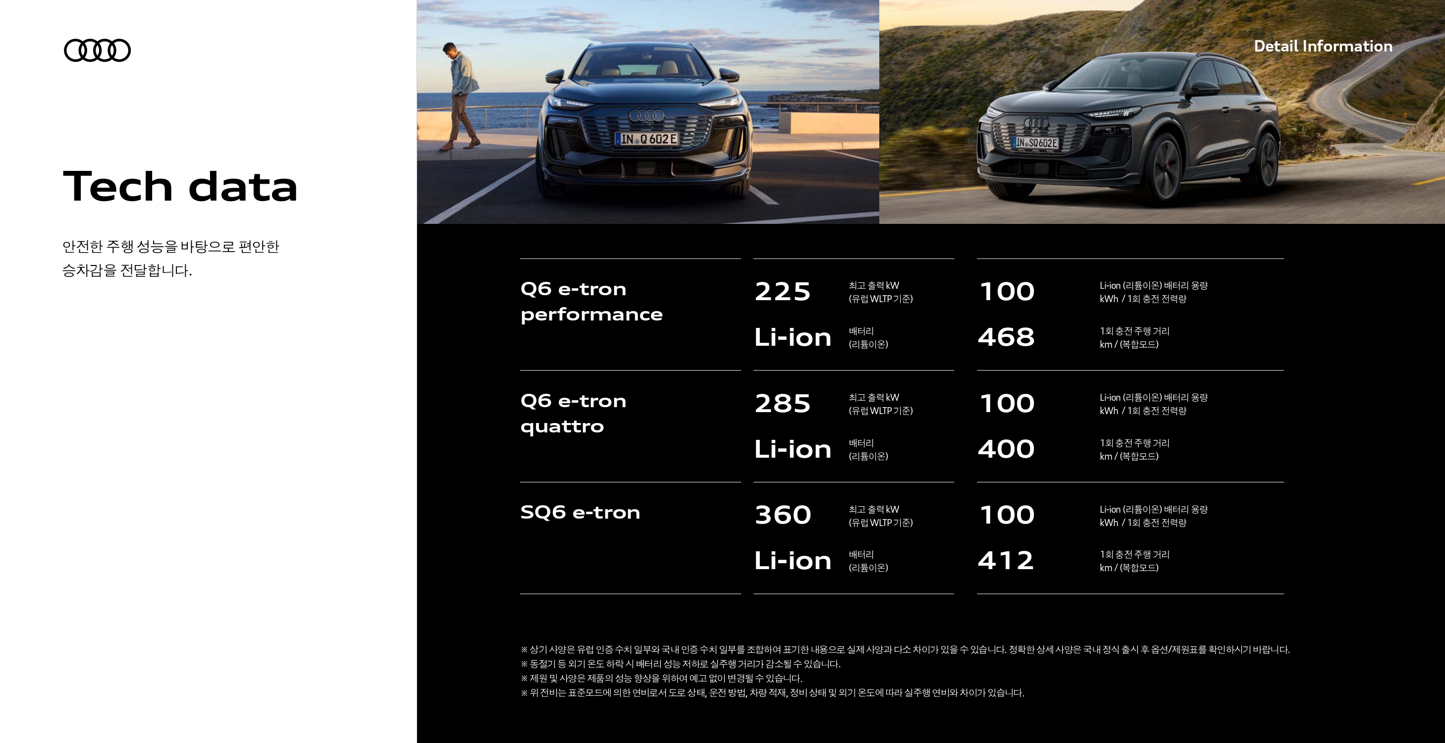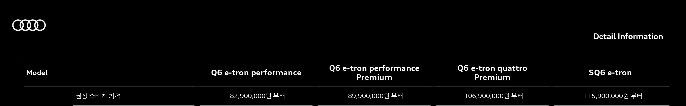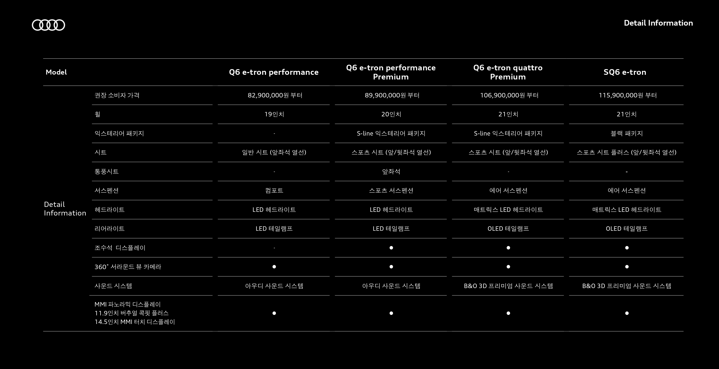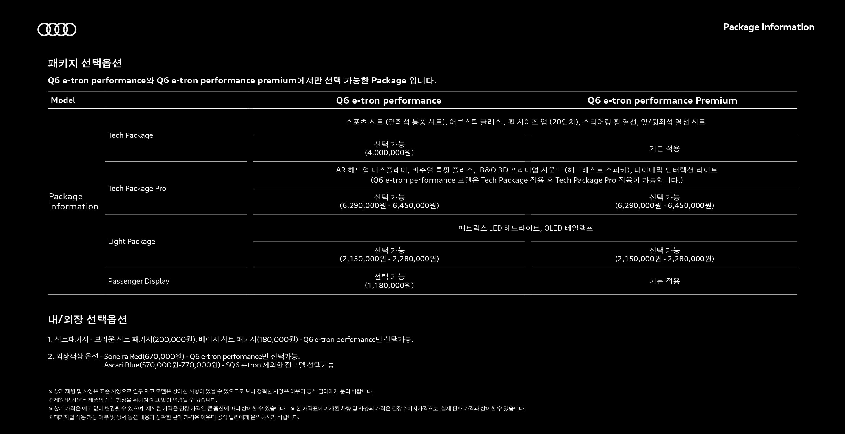 사실, 아우디가 타 브랜드 대비 옵션표를 상당히 자세하게 표현하는 회사 중 하나인데, 이번 Q6 e-트론은 순수하게 차이점 정도만 표현 하였습니다.