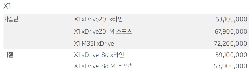 BMW X1 가격표