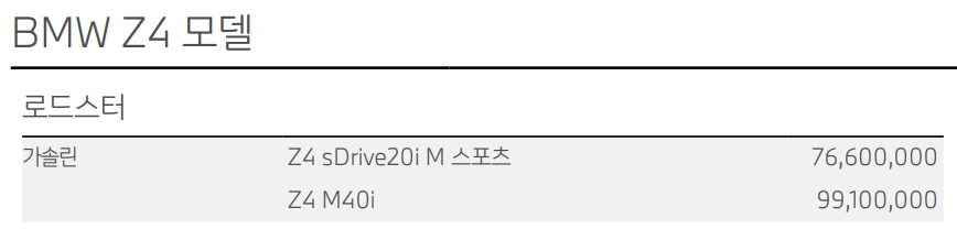 BMW Z4 가격표