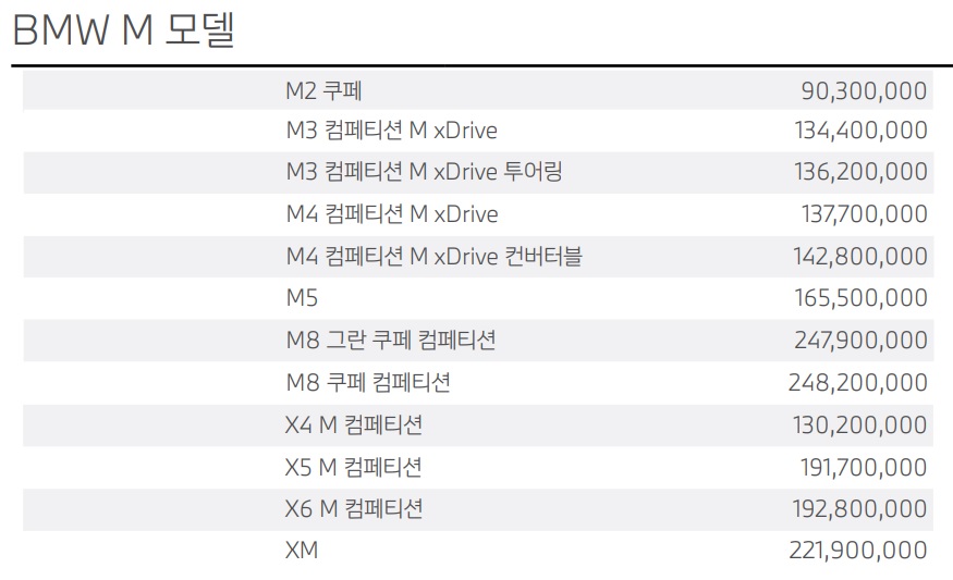 BMW M시리즈 가격표