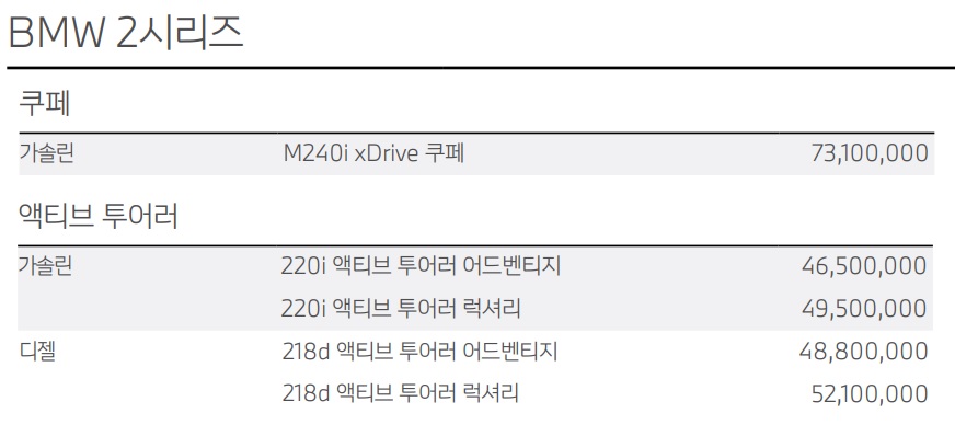 2시리즈 가격표