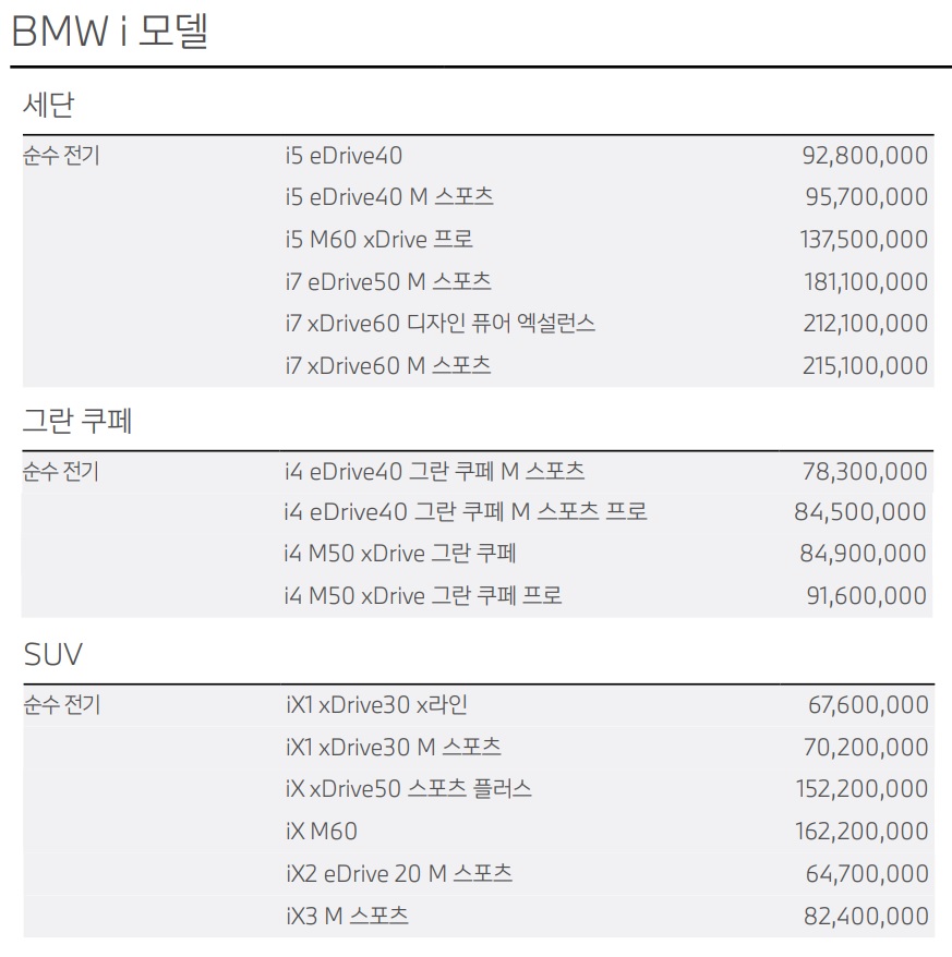 BMW 전기차 가격표