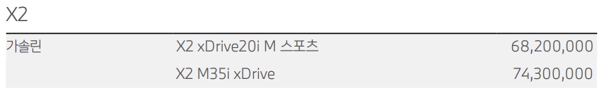 BMW X2 가격표