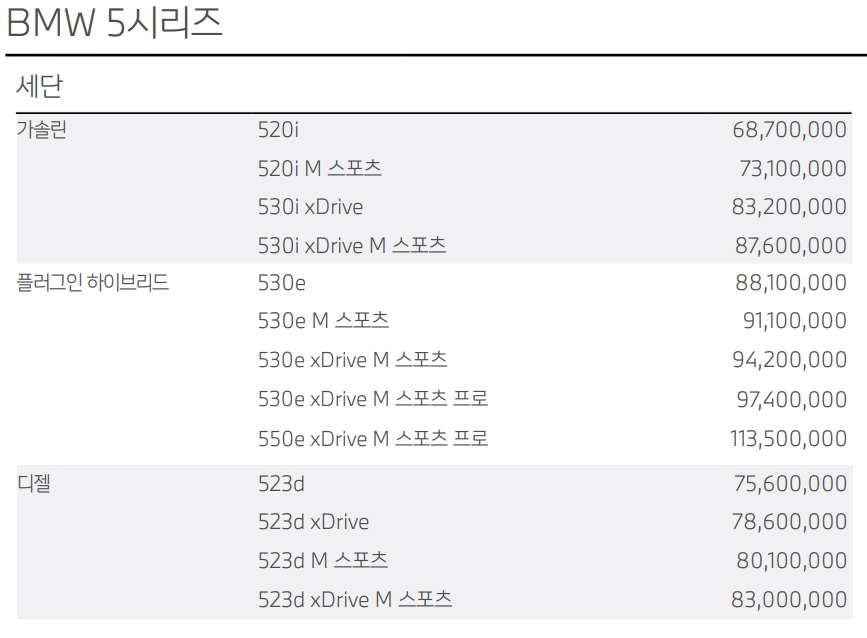 5시리즈 가격표