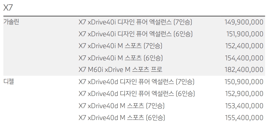 BMW X7 가격표
