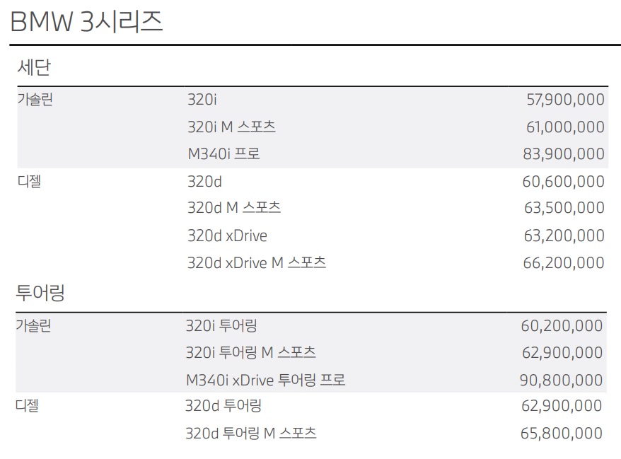 3시리즈 가격표