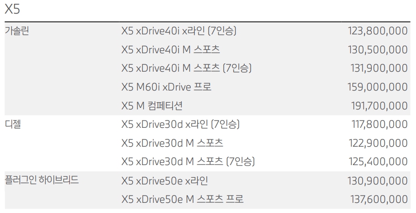 BMW X5 가격표