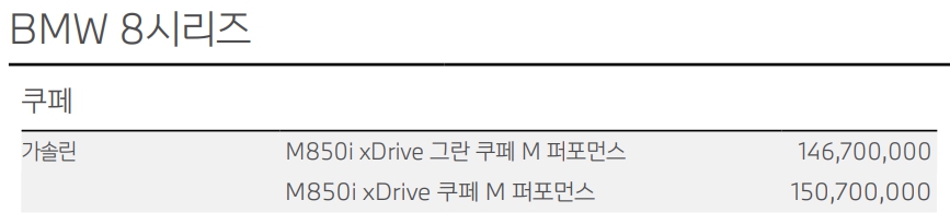 8시리즈 가격표