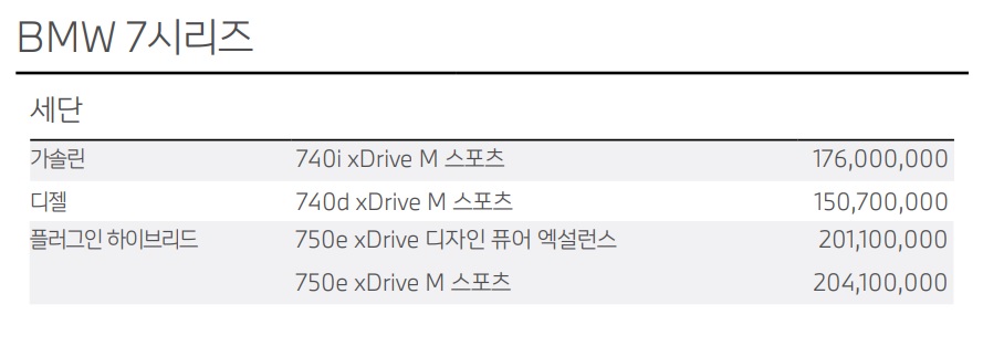 7시리즈 가격표