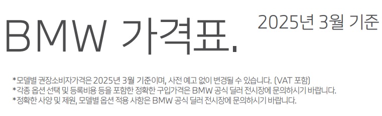 오늘은 여러분들께 2025년 3월 BMW 전차종 가격표를 공유하는 시간을 가져볼까 합니다.