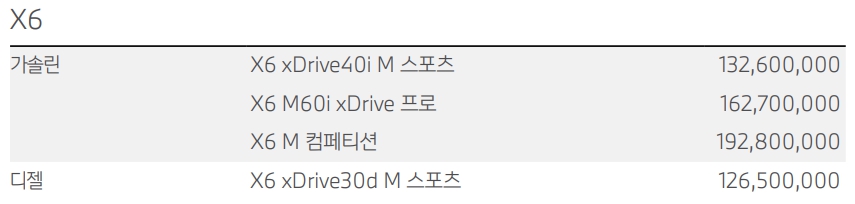 X6 M 컴페티션 모델을 제외한 나머지 모든 모델들의 가격이 인상되었습니다.