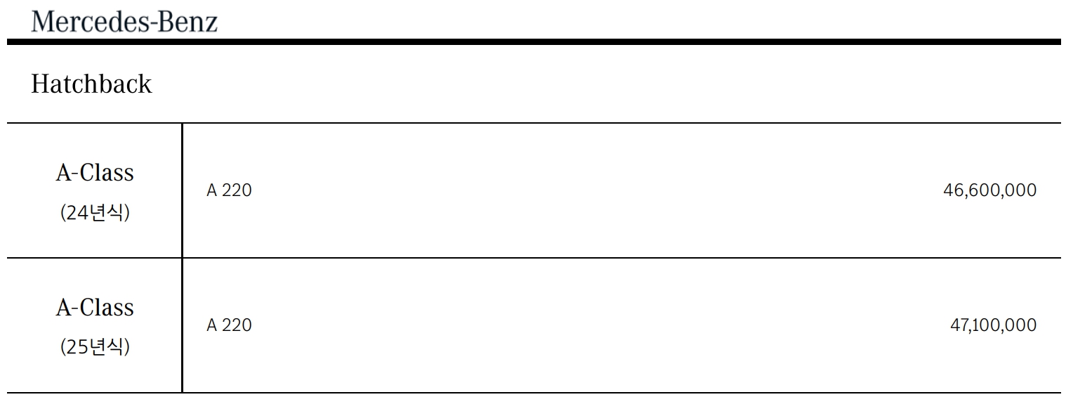 아래는 2025년 3월 벤츠 전차종 가격표 원본 파일로, 필요하신 분께서는 받아 가시기 바랍니다.