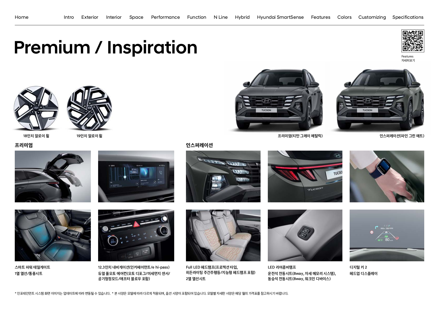 트림 구성의 경우, 모던 / 프리미엄 / 인스퍼레이션 3가지 구성으로 되어 있습니다.