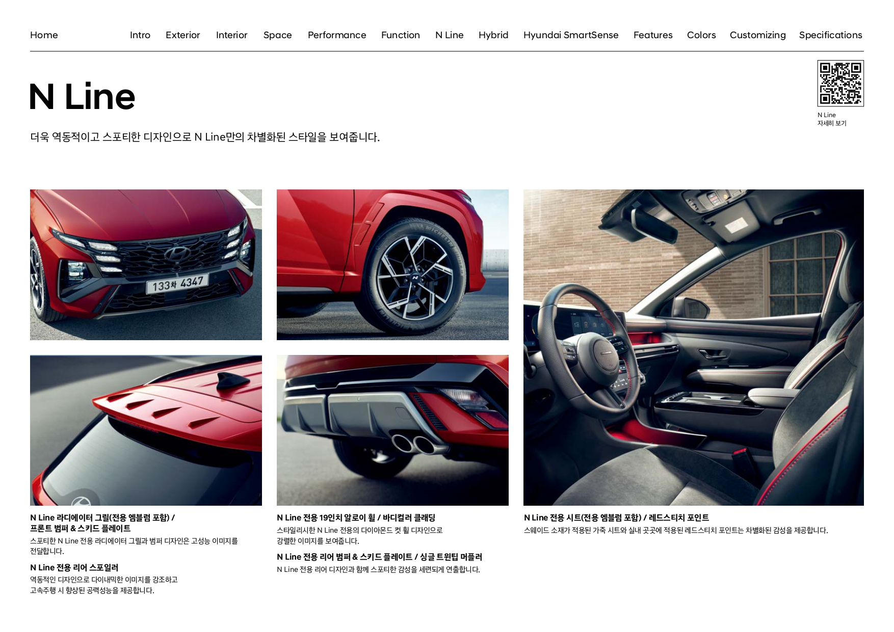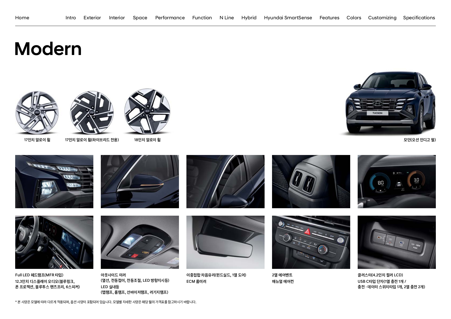 또 스포티한 감각을 추구하시는 분들께는 N라인 트림도 선택이 가능한데, 이 N라인 트림은 기본형인 모던에서는 제공되지 않고, 프리미엄 혹은 인스퍼레이션 트림에서만 제공됩니다.