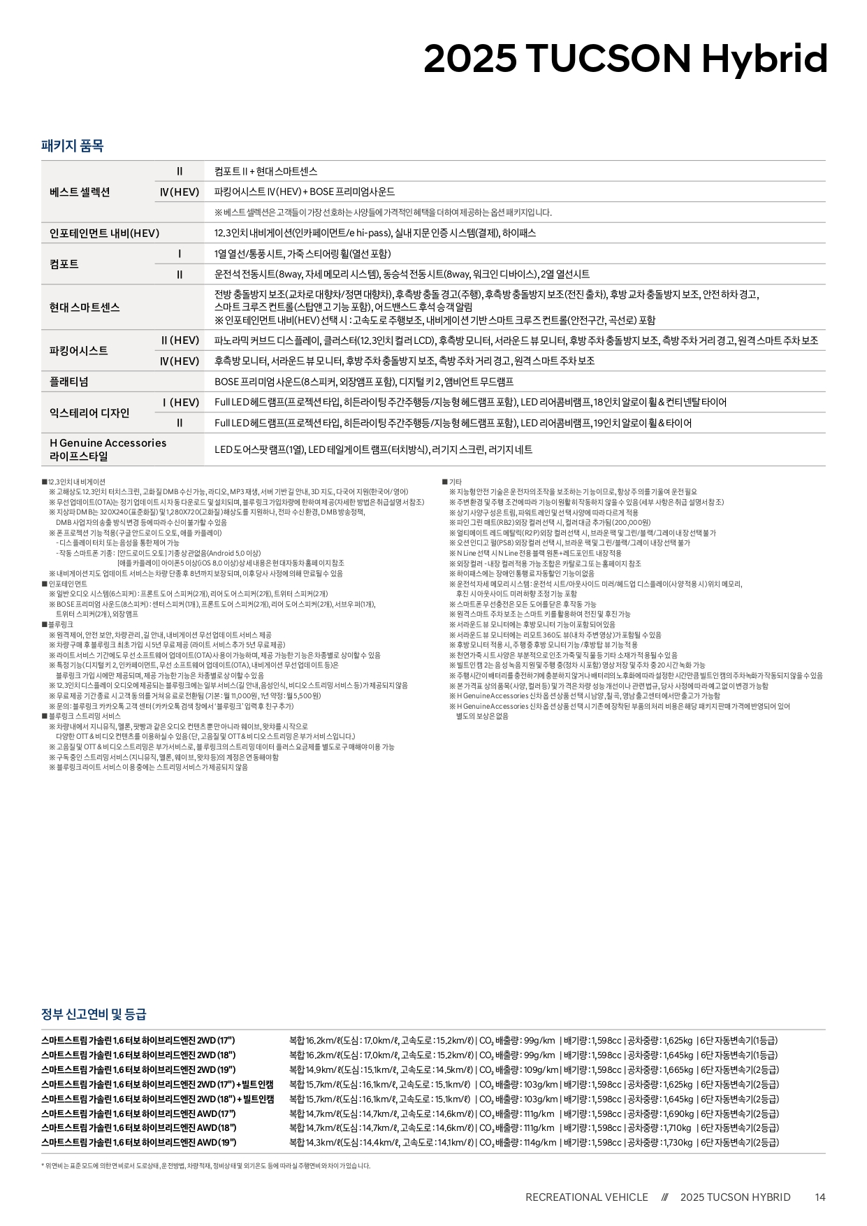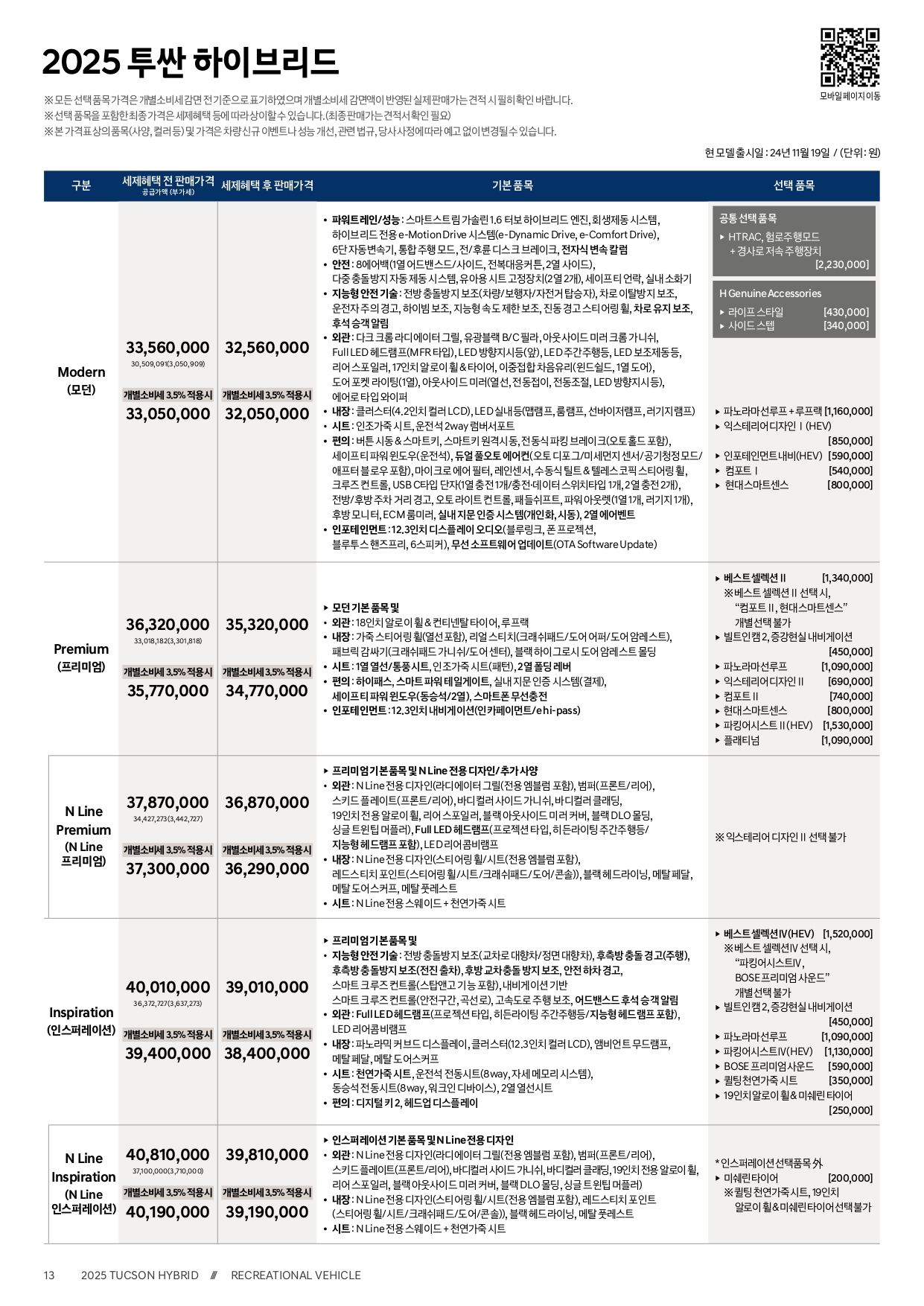 ▼ 2025 투싼 하이브리드 가격표 ▼