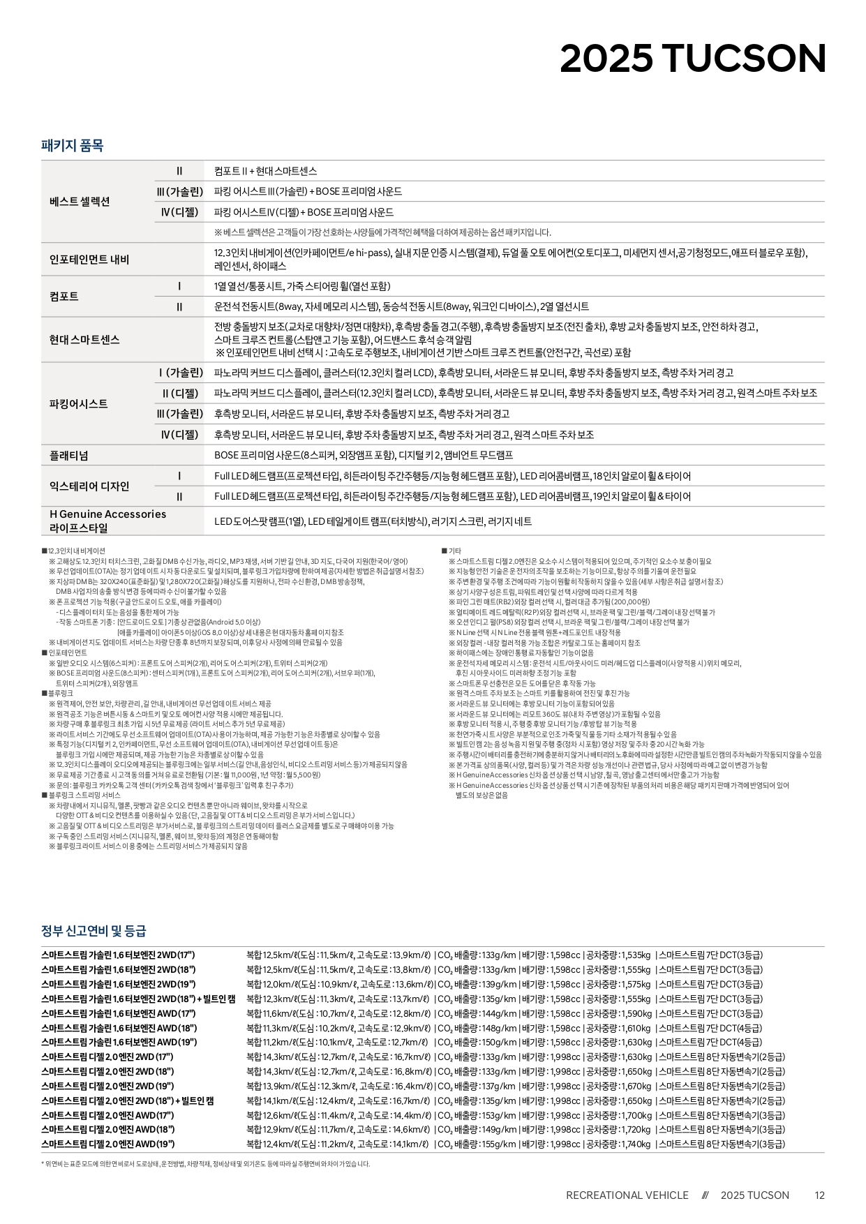 마지막으로 2025 투싼 제원입니다.