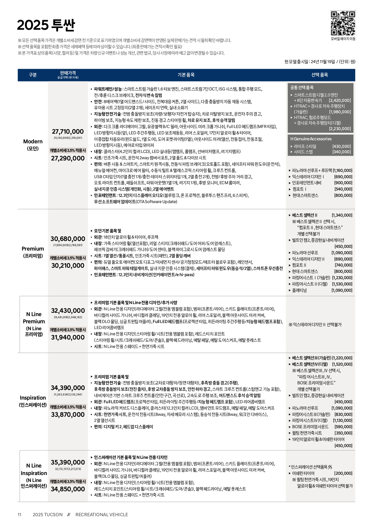 ▼ 2025 투싼 가격표 ▼