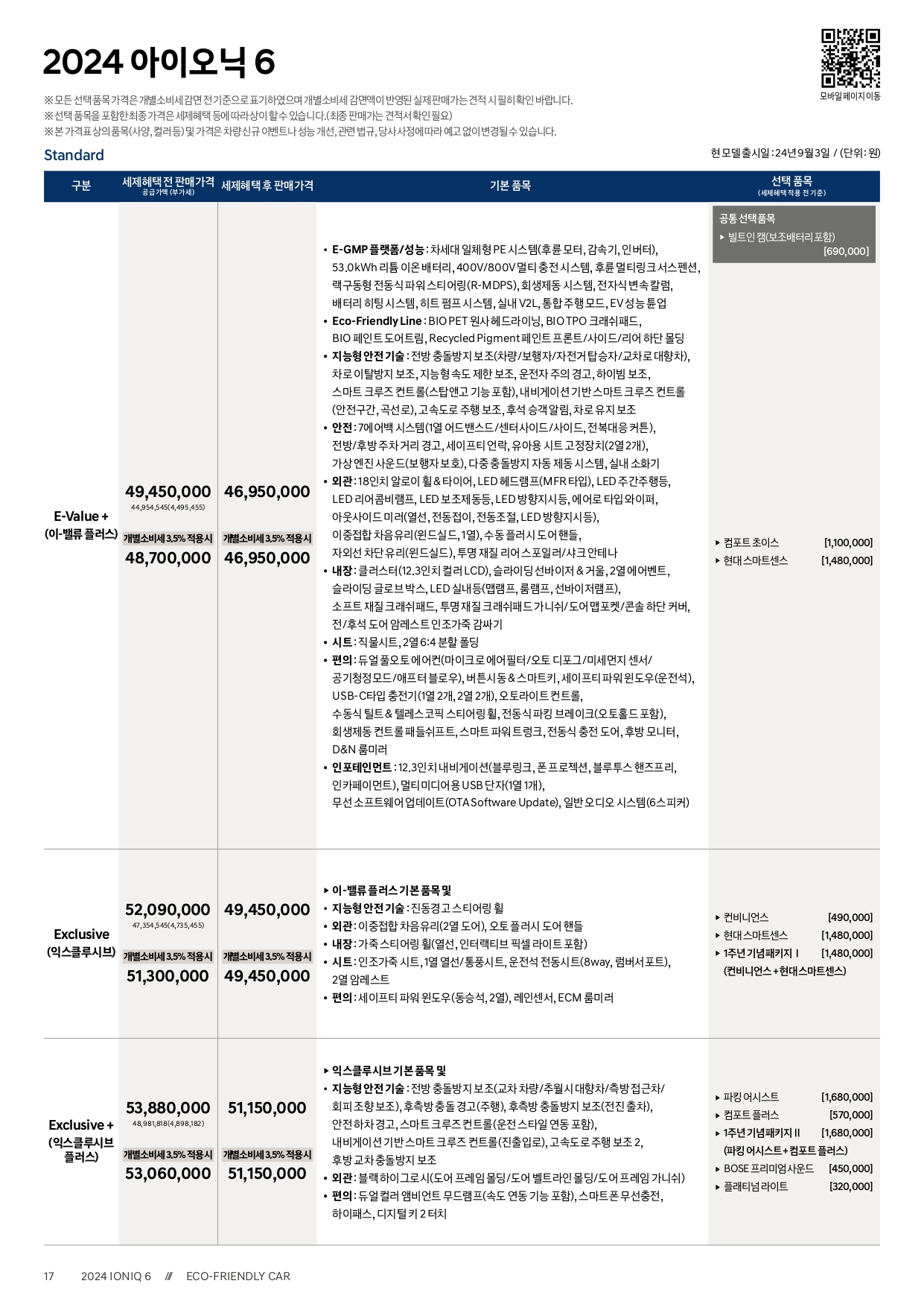 ▼ 2024 아이오닉 6 스탠다드 가격표 ▼