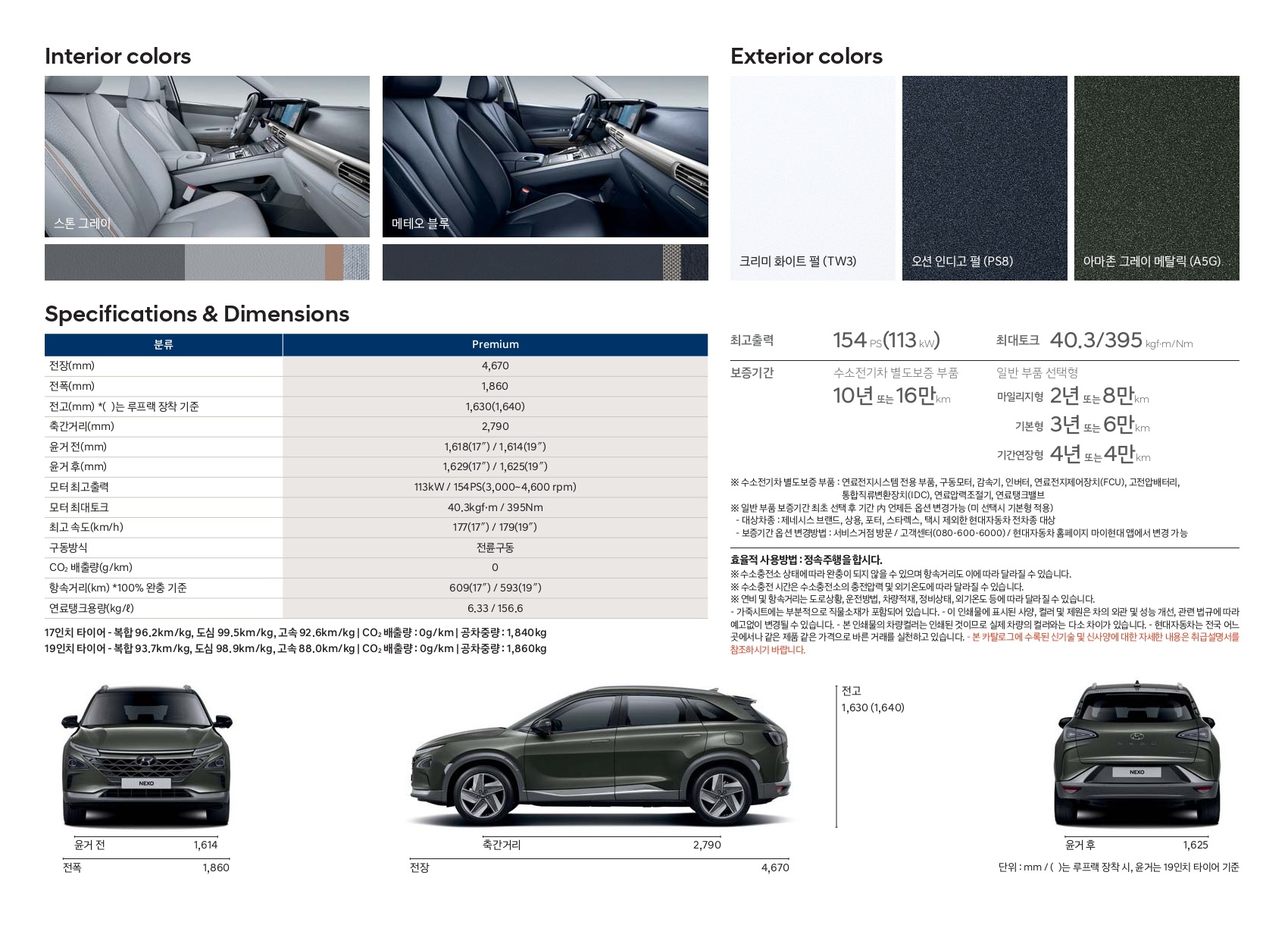 마지막으로 넥쏘의 제원입니다.