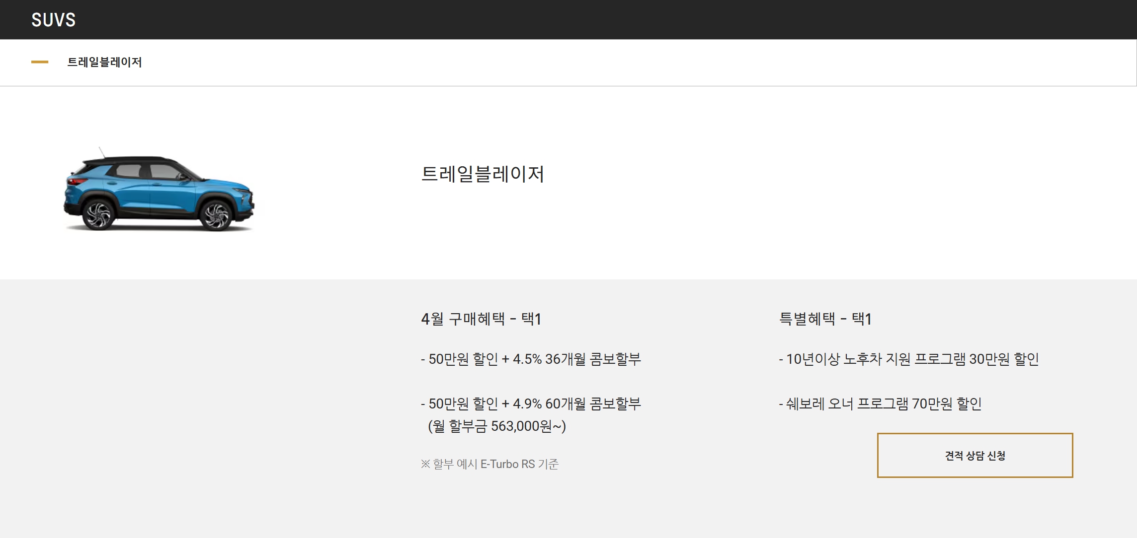 오늘은 여러분들께 2025년 4월 쉐보레 전차종 가격표 및 구매혜택 소개를 해볼까 합니다.
