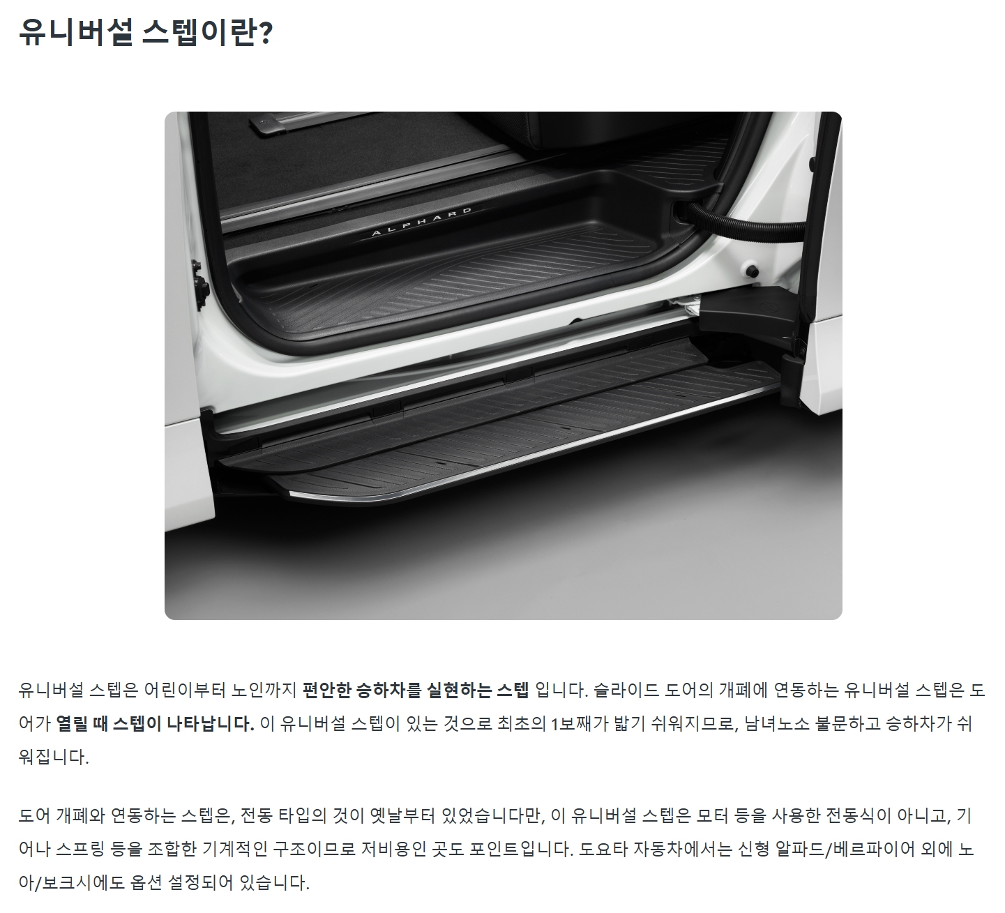 단 한 가지 차이점. 토요타에서 유니버설 스텝이라고 불리는 사이드 스텝이 추가되었습니다.