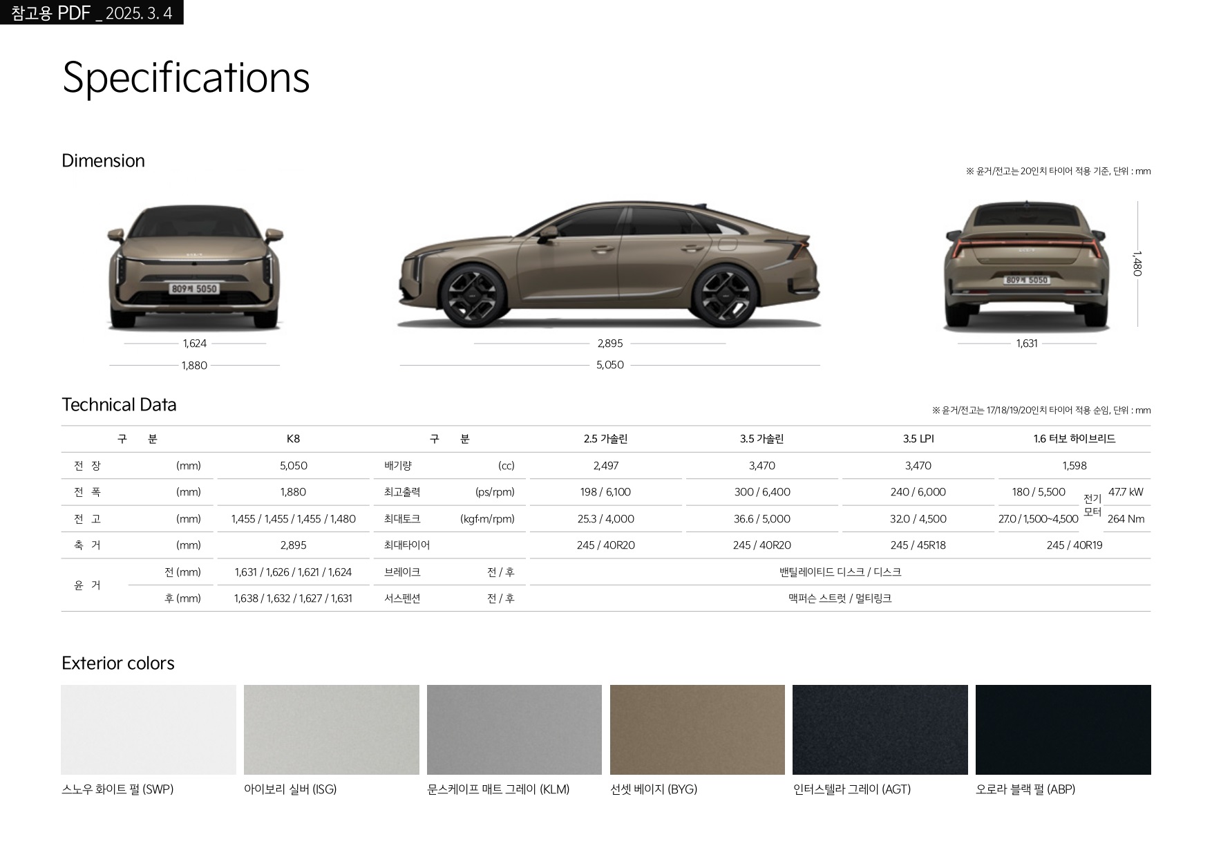 ▼ 2025 K8 제원 ▼