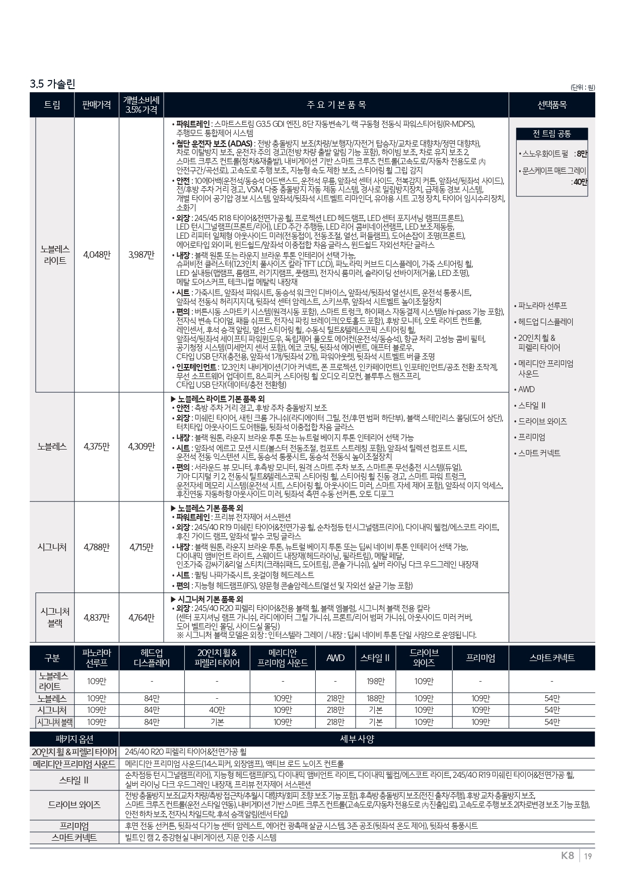 ▼ 2025 K8 3.5 가솔린 가격표 ▼