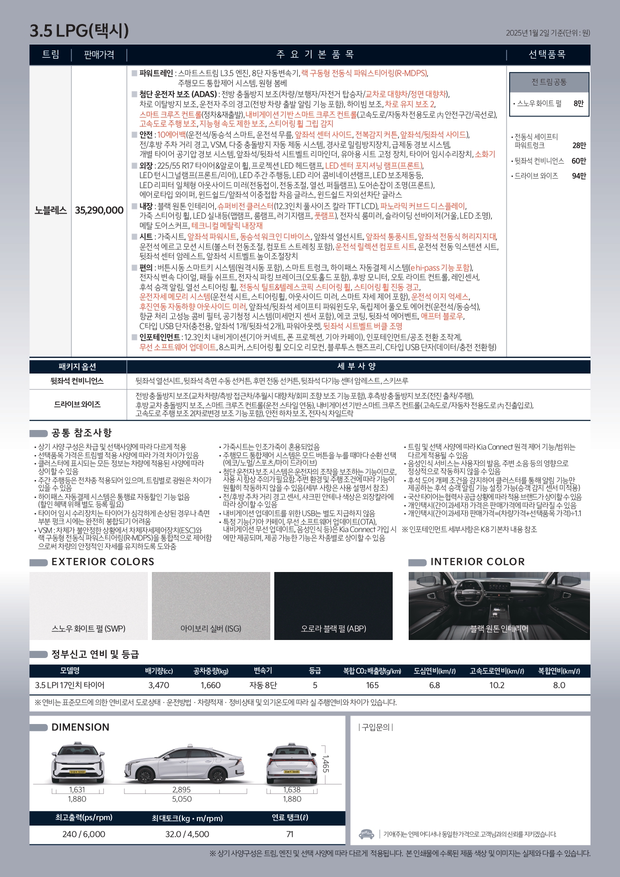 ▼ 2025 K8 3.5 LPG 가격표 ▼