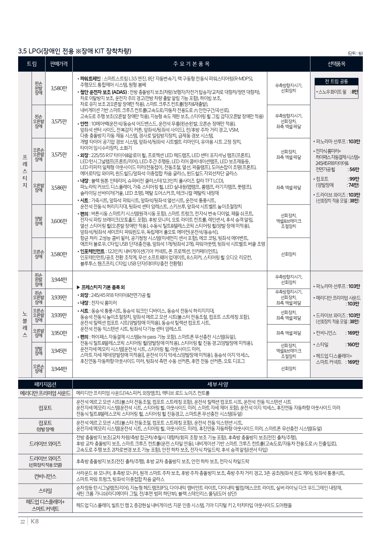 ▼ 2025 K8 장애인용 가격표 ▼