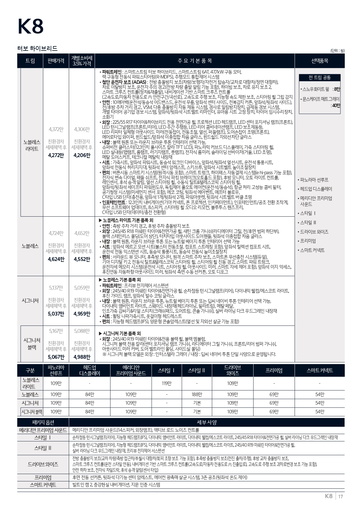 아래는 2025 K8 가격표 및 카탈로그, 그리고 택시용 사양도 함께 준비하였습니다.