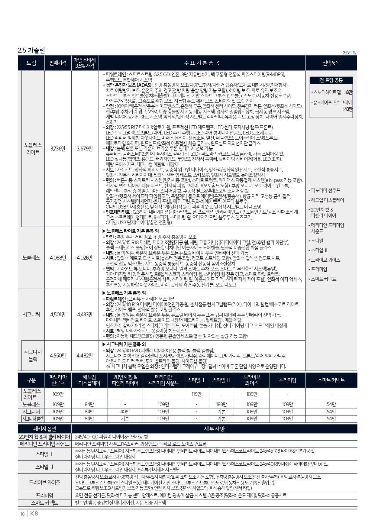 ▼ 2025 K8 2.5 가솔린 가격표 ▼