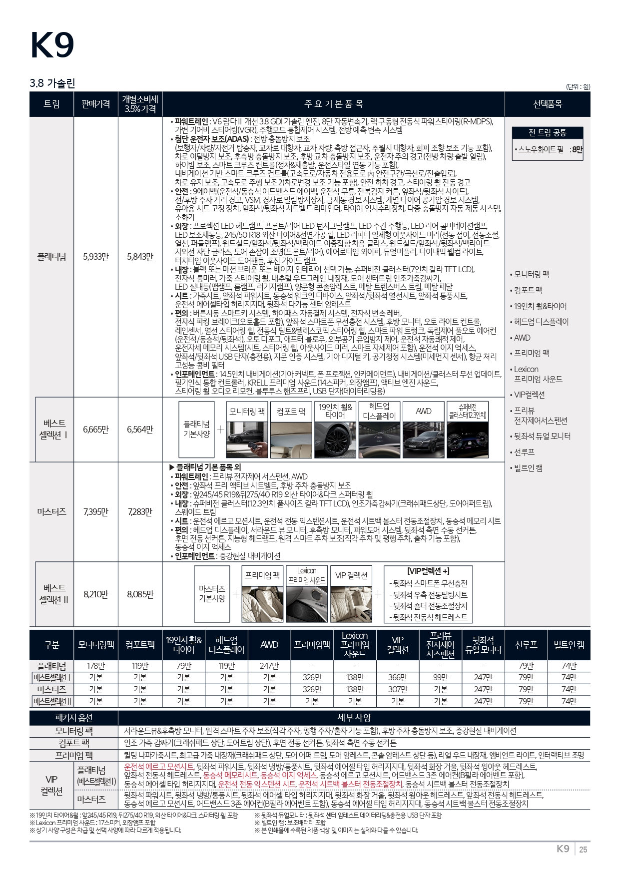참고로, 오해하실까 봐 미리 말씀드리면, K9 차량은 아직까지도 25년형이 출시를 하지 않은 상황입니다.