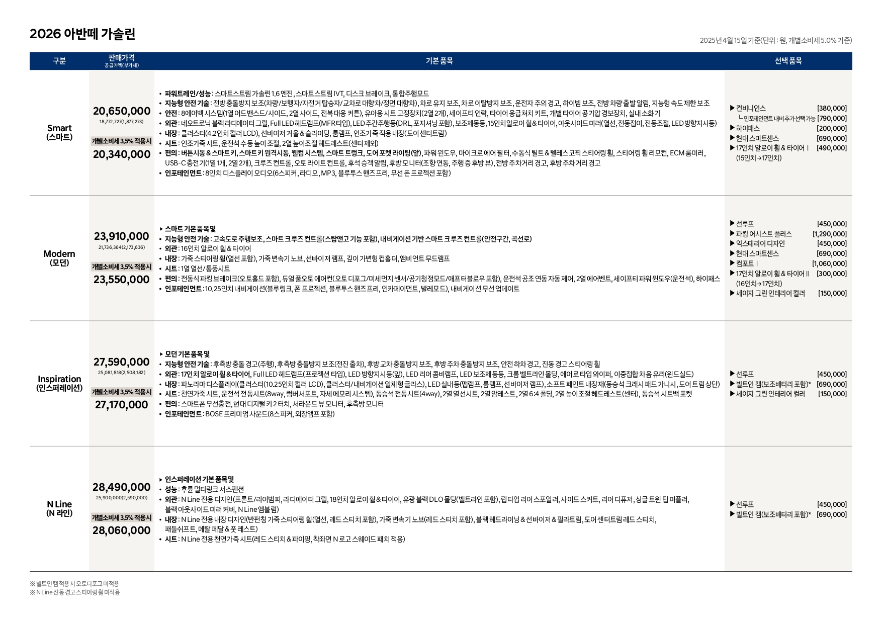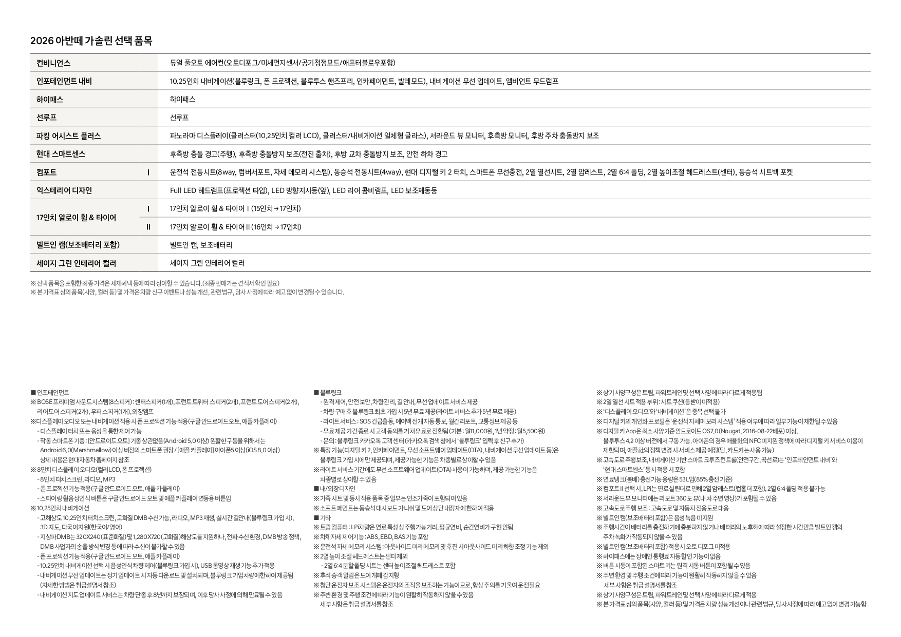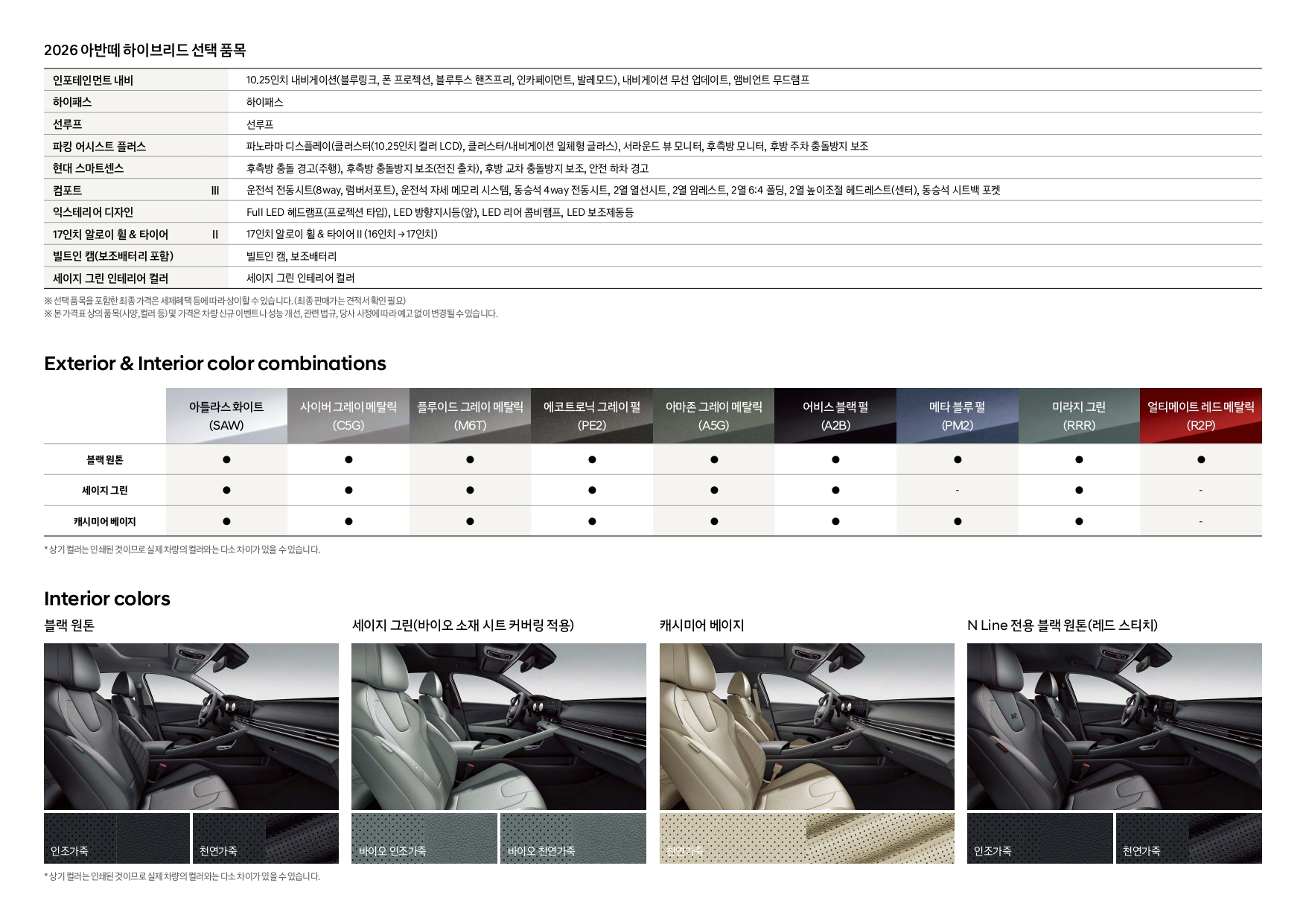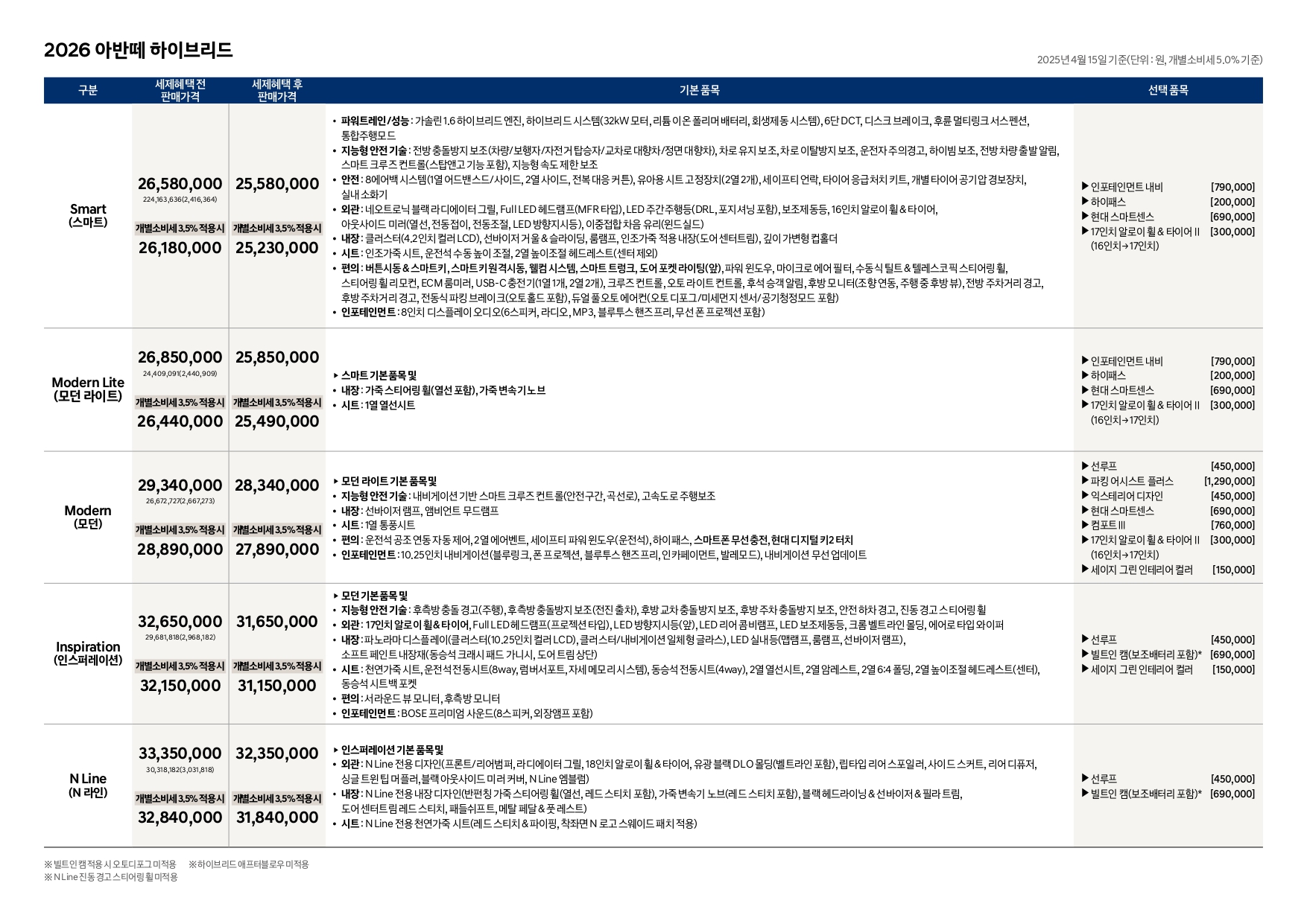 제가 앞서서 26년형 아반떼 가격이 다소 인상이 되었다고 말씀을 드렸는데, 26년형으로 가면서, 추가된 옵션만 간단히 설명드리겠습니다.