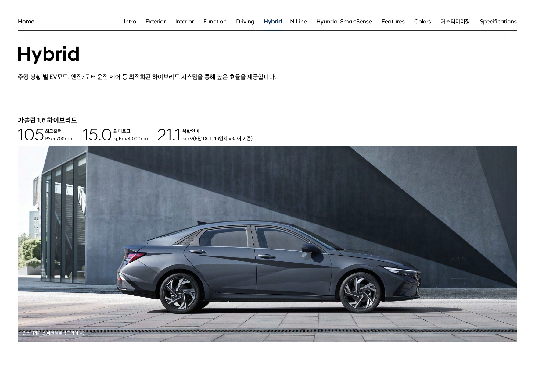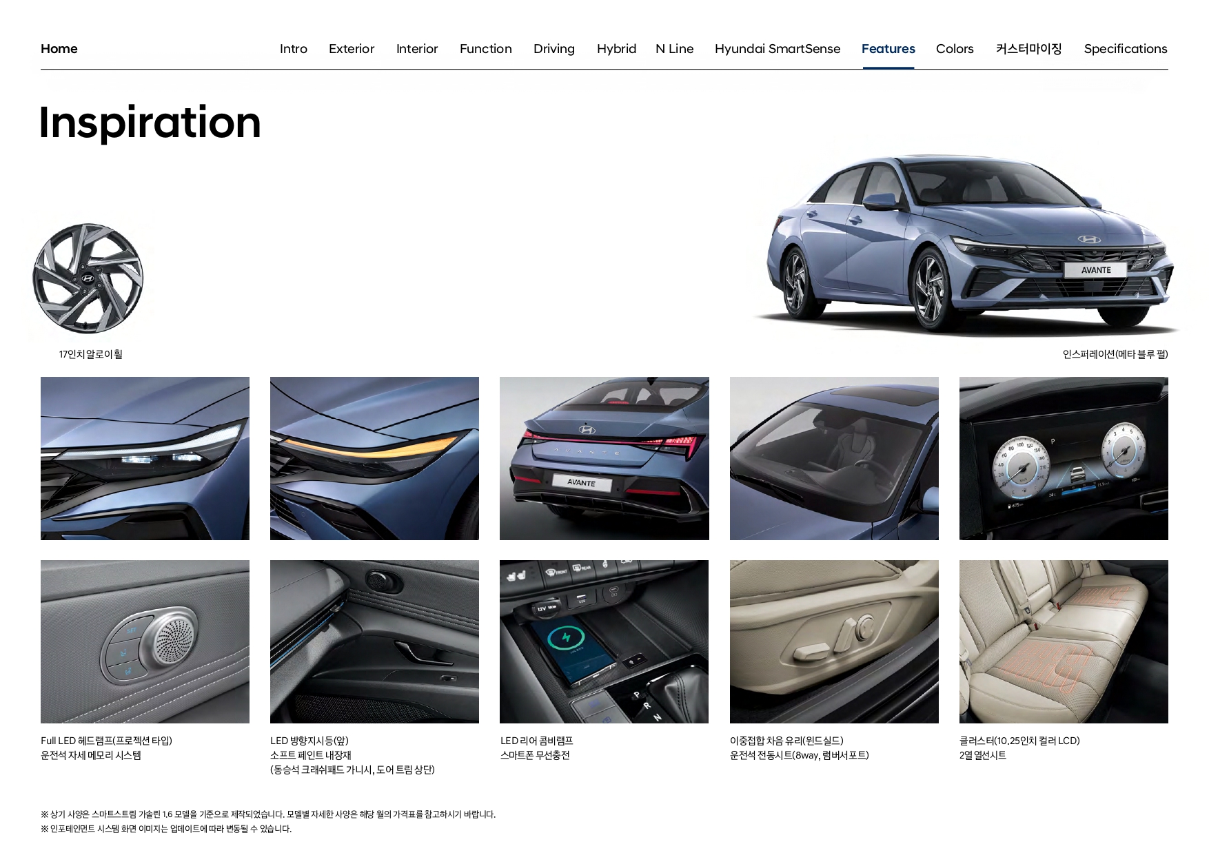 카탈로그는 아반떼와 아반떼 하이브리드가 통합되어 있고, 아반떼 N은 별도입니다.
