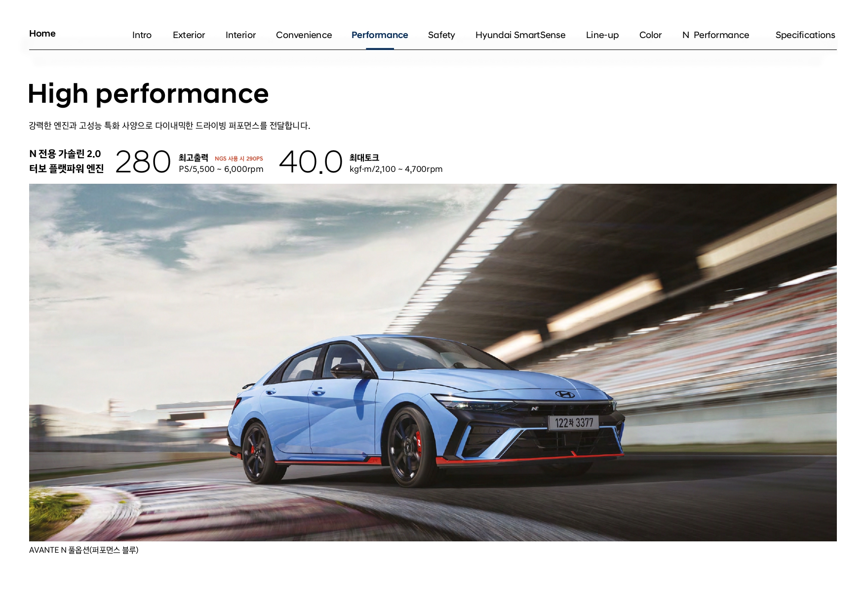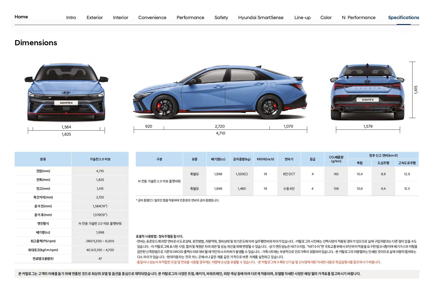 아반떼 N은 카탈로그가 별도 분리되어 있어서, 제원 또한 별도로 되어 있습니다.