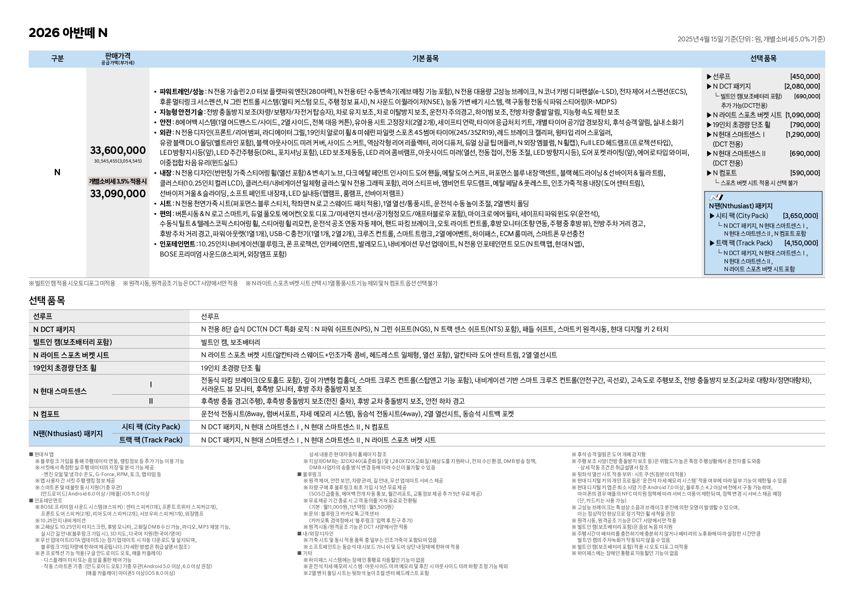 한 가지 아쉬운 점으로는 LPi 파워트레인 선택 시, N 라인 트림은 선택 불가입니다.