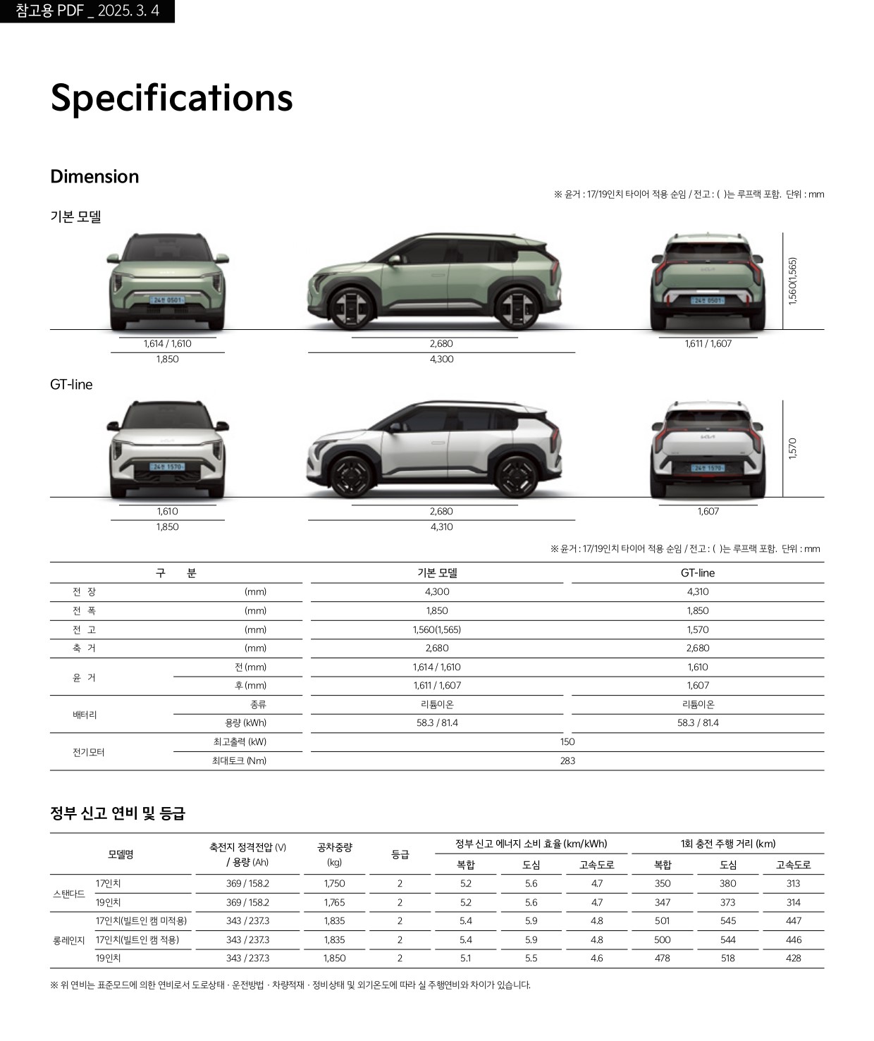 ▼ 2025 기아 EV3 제원 ▼