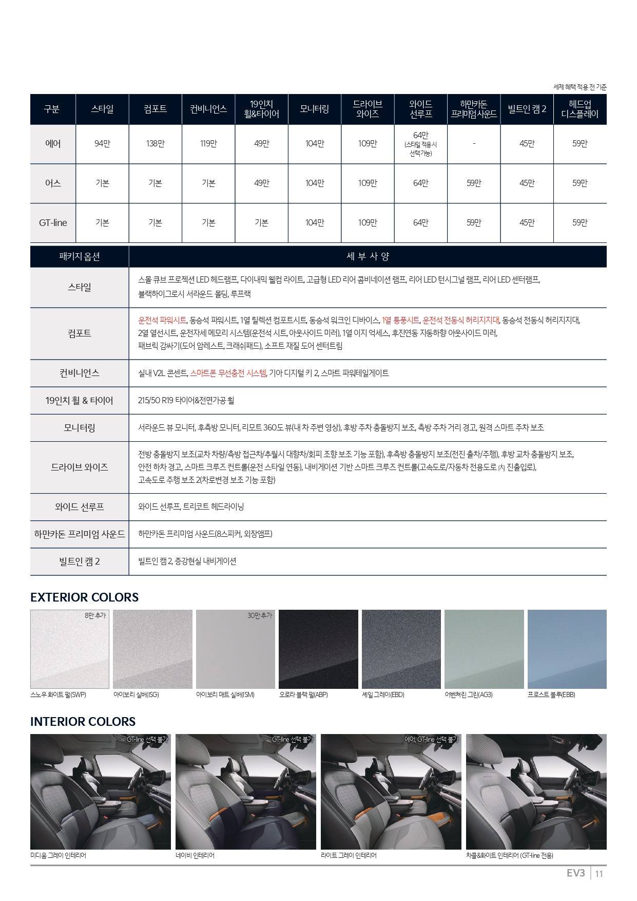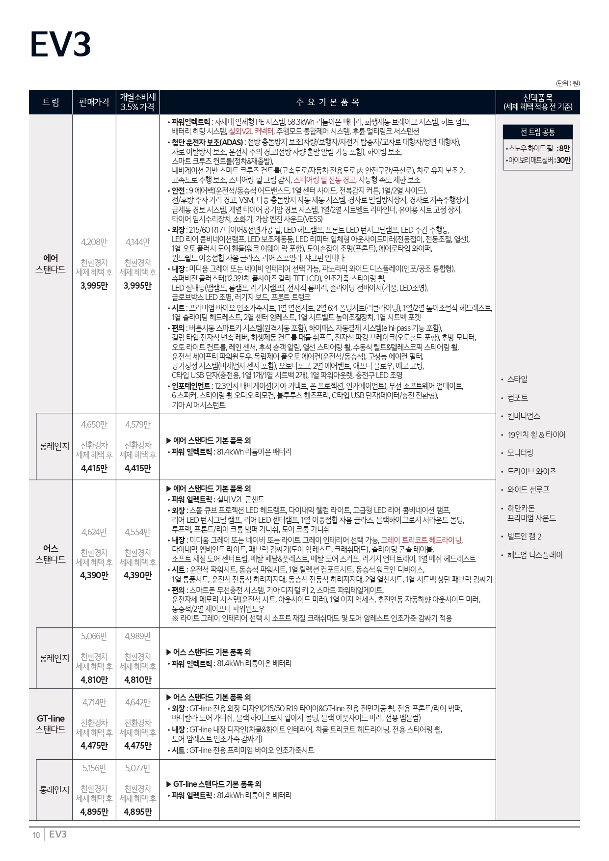 아래는 2026 EV3 가격표 원본 및 카탈로그 인데, 필요하신 분께서는 받아 가시면 됩니다.