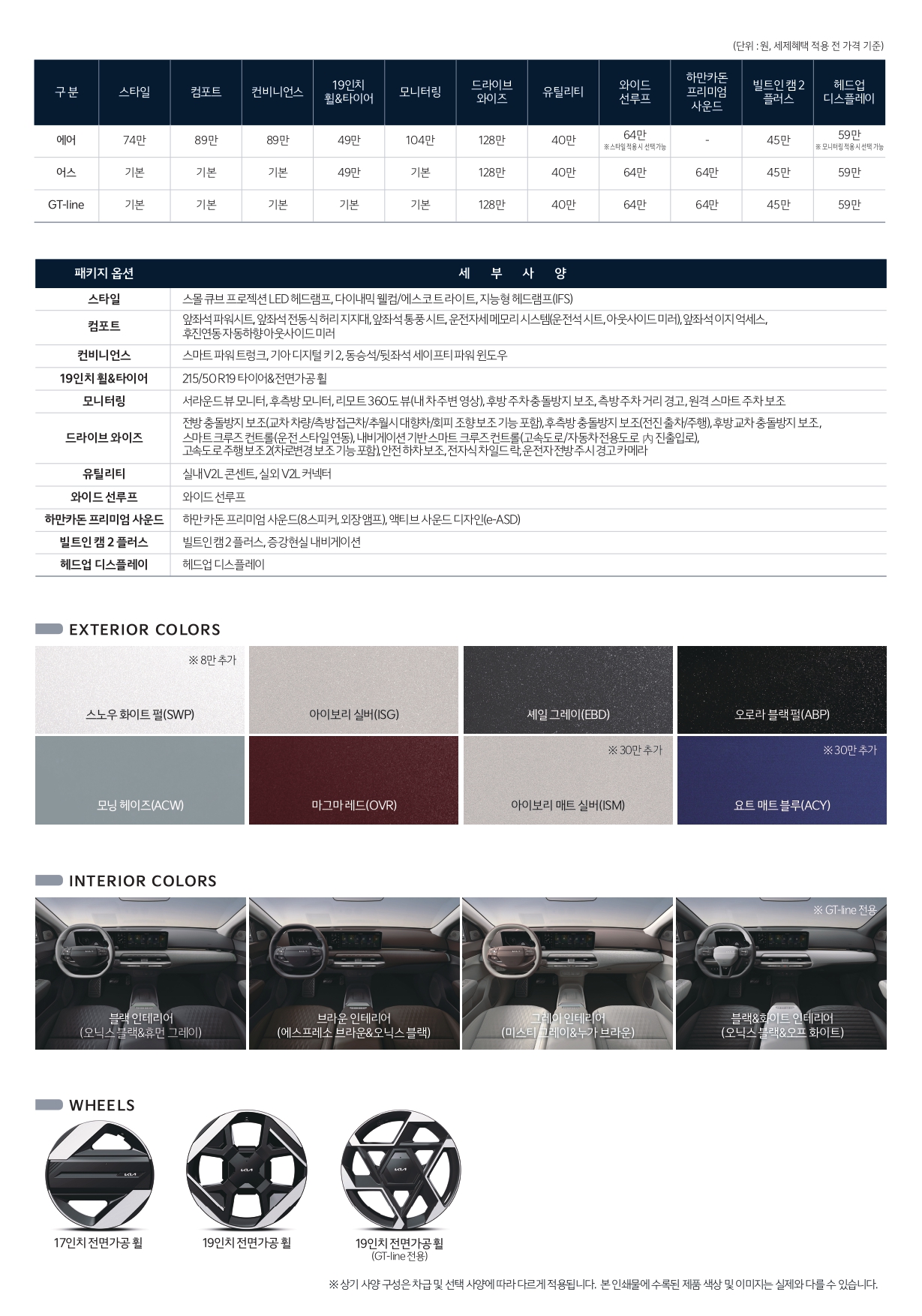 앞서 말씀드린 것처럼, 각 트림마다 롱레인지 사양이 옵션처럼 되어 있고, 거기에 추가로 선택품목을 더하면 되는 구조입니다.