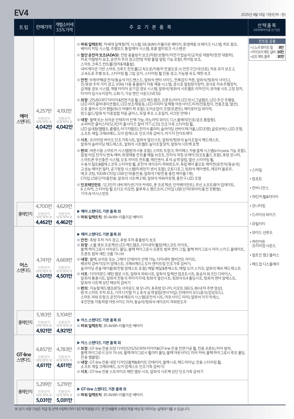 | 2025 EV3 가격표 및 카탈로그 - 개소세 인하 기준 (0) | 2025.04.19 |