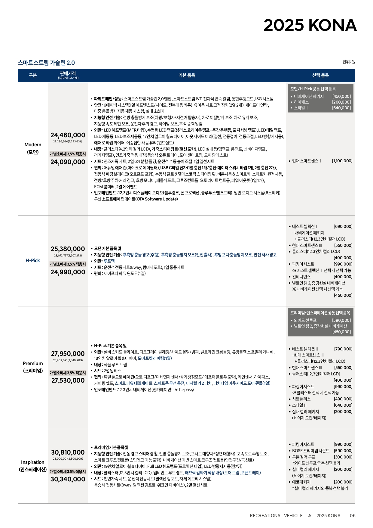▼ 2025 코나 가격표 ▼