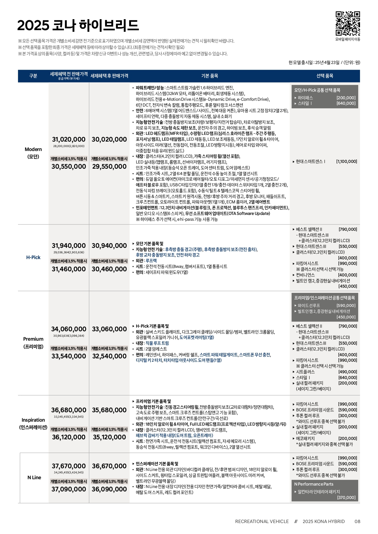▼ 2025 코나 하이브리드 가격표 ▼
