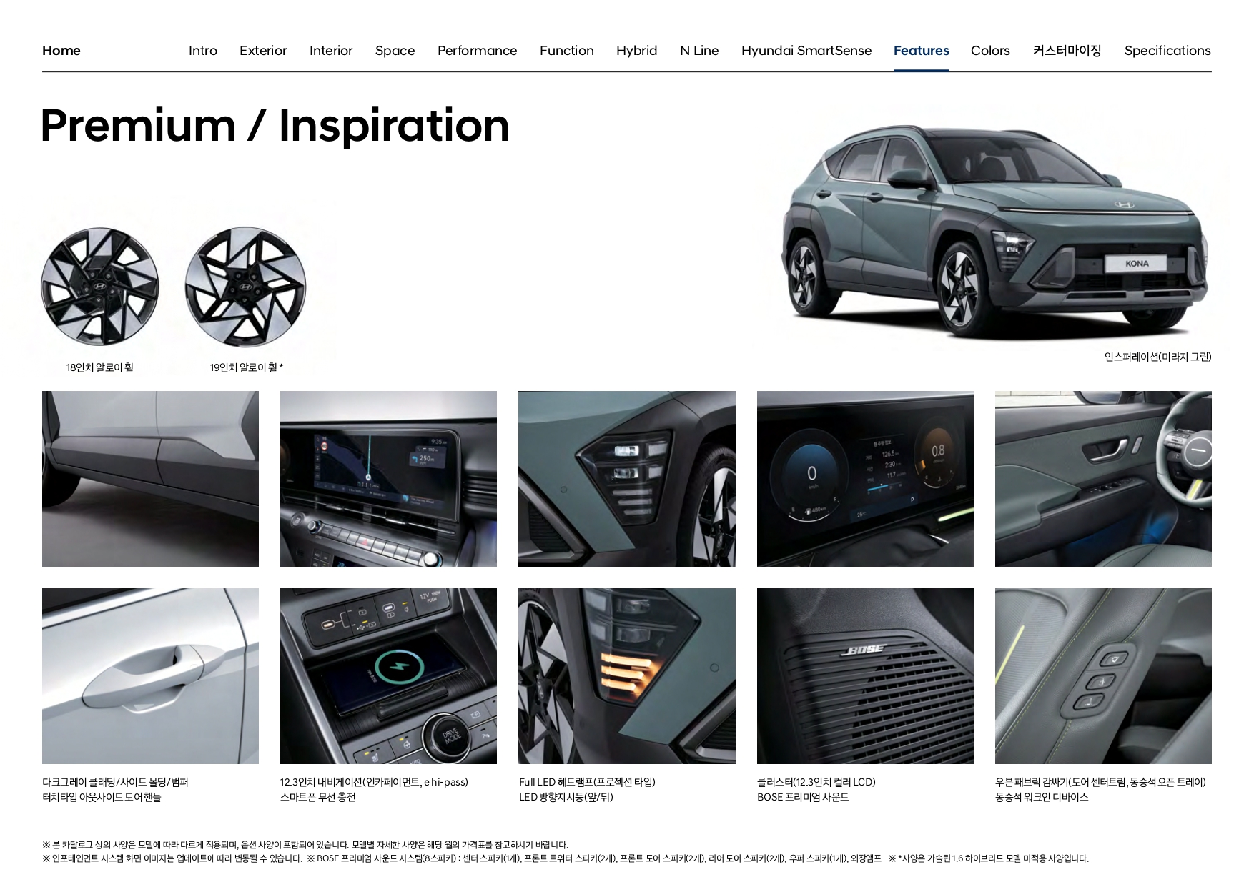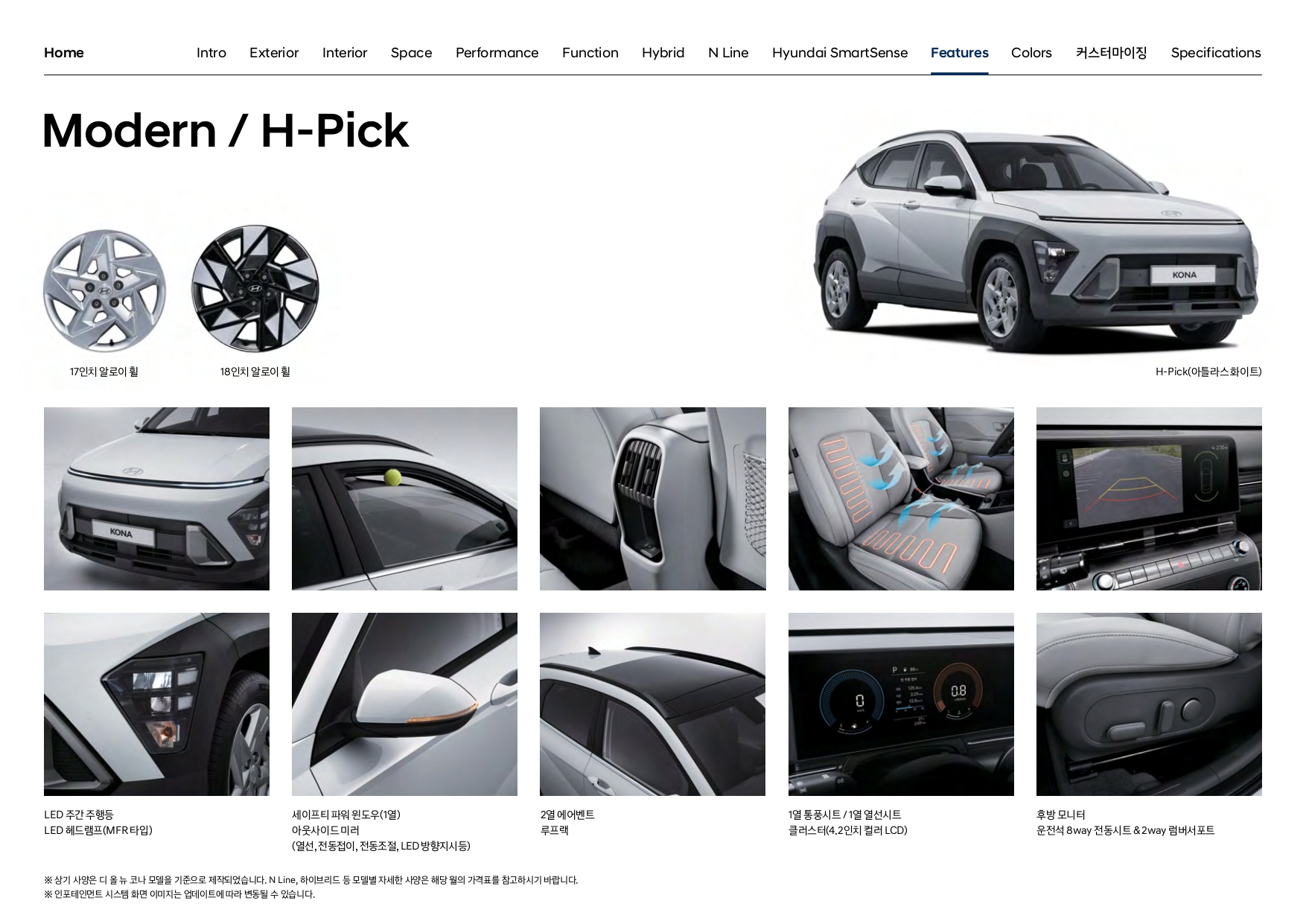 아래는 많이들 찾으시는 코나 하이브리드 모델로, 트림 구성 자체는 가솔린과 동일합니다.