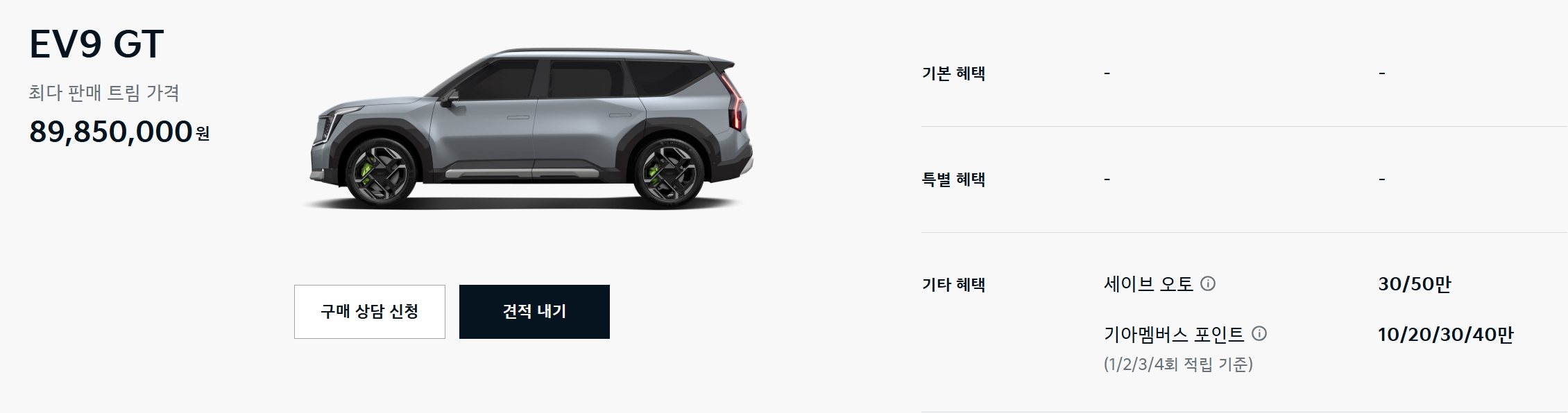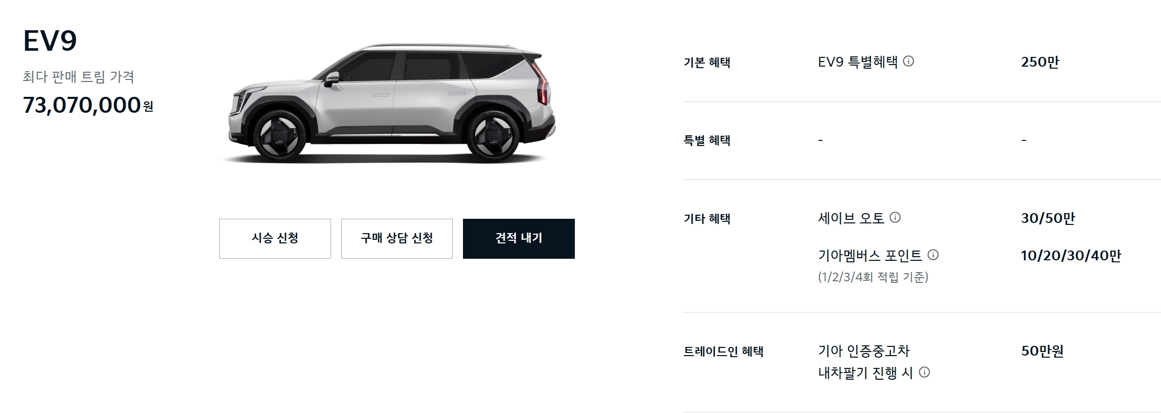 EV9 특별 혜택 250만원이 전부입니다.