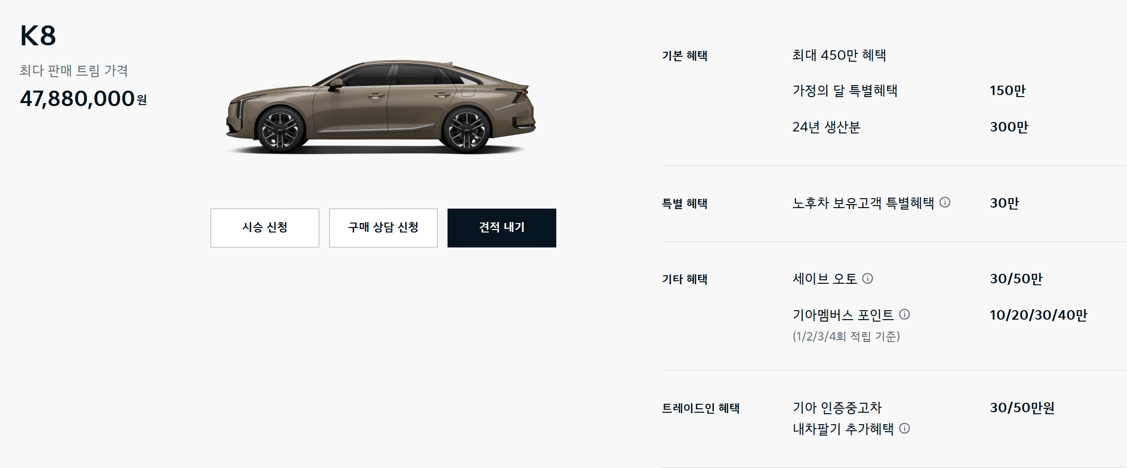 K8 또한 K5와 마찬가지로 할인이 늘었습니다.