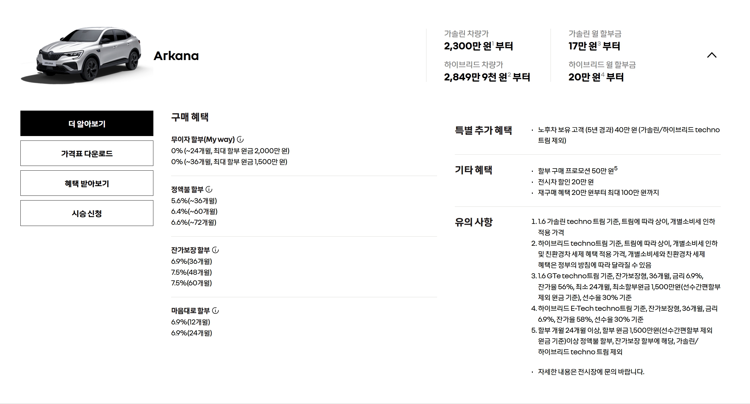 아르카나 가격표 및 할인