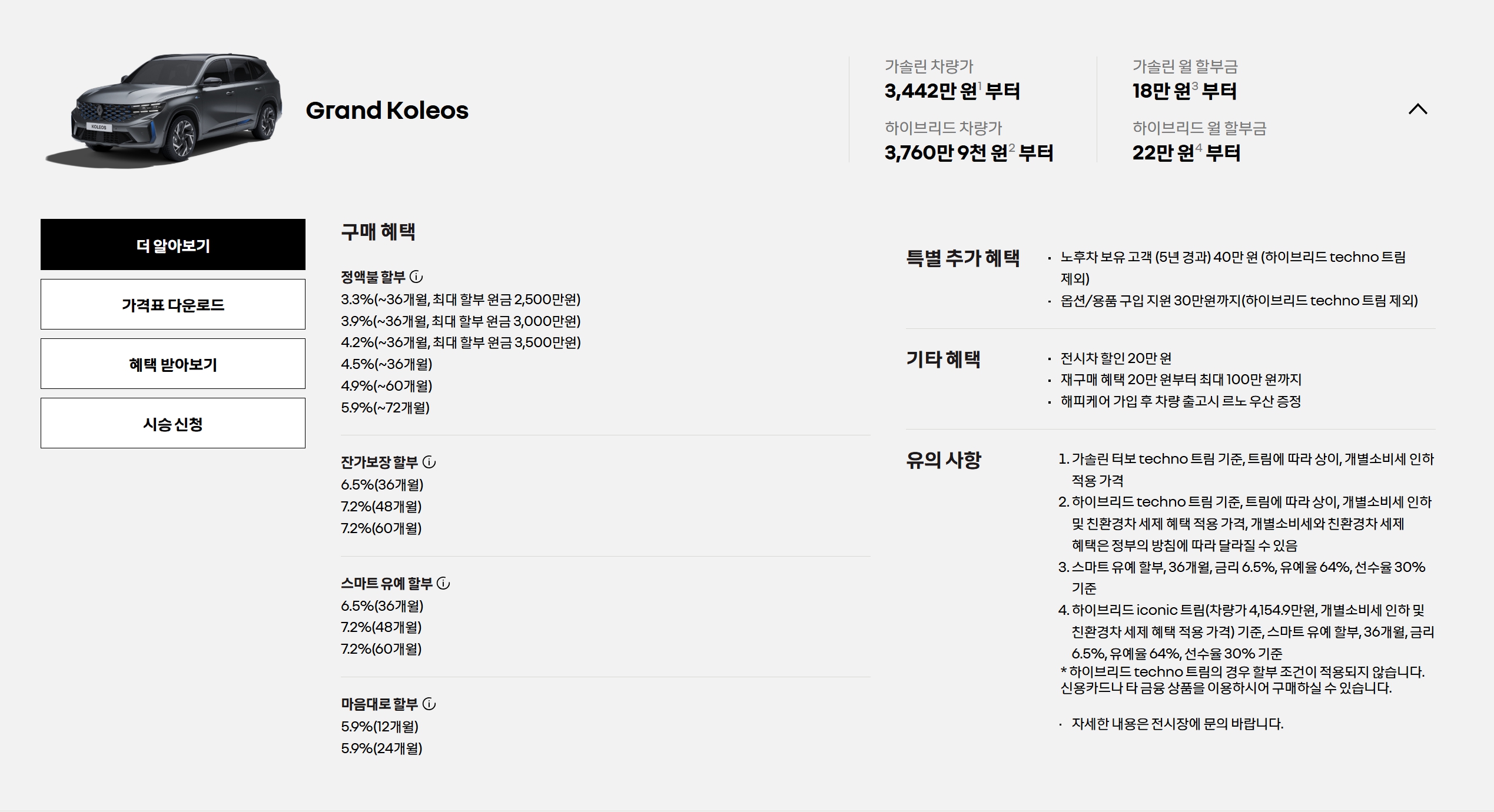 그랑 콜레오스 가격표 및 할인