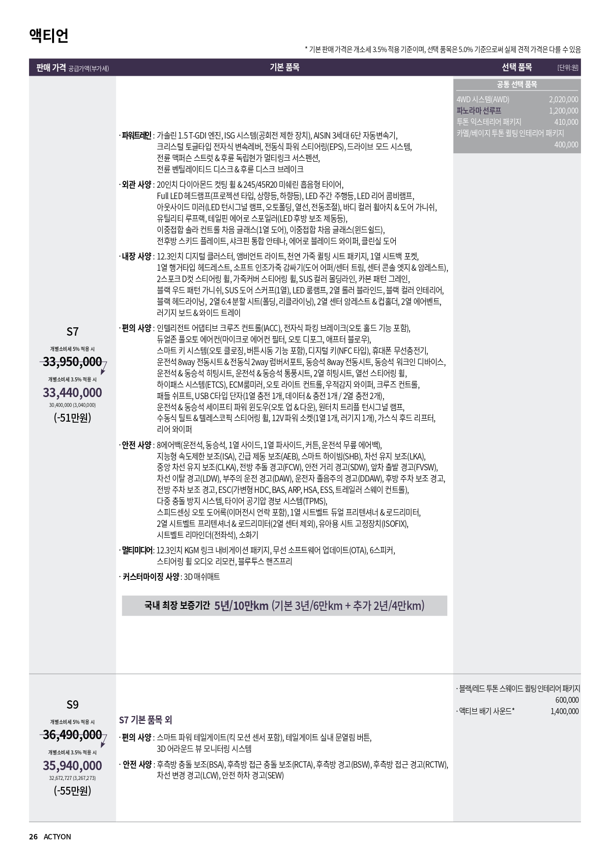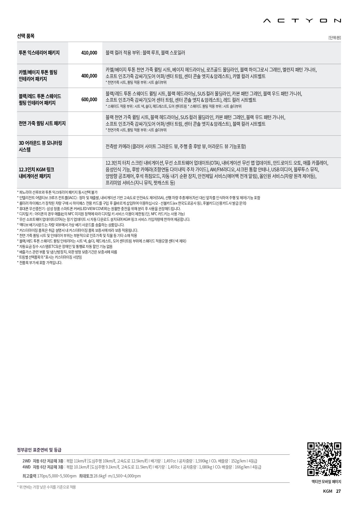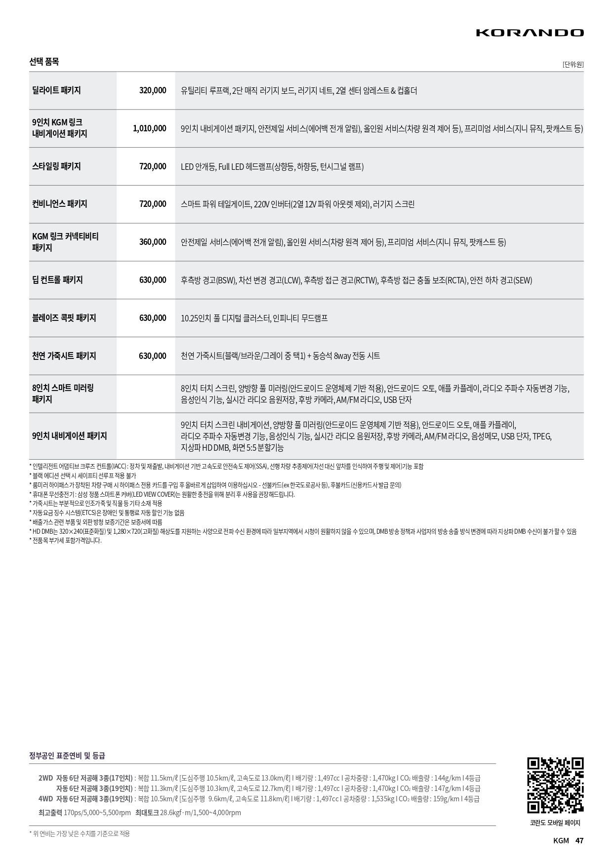 KGM 페스타 할인이 50~100만원 있고, 이 외에는 금융 및 타겟 같은 조건만 몇 개 있습니다.