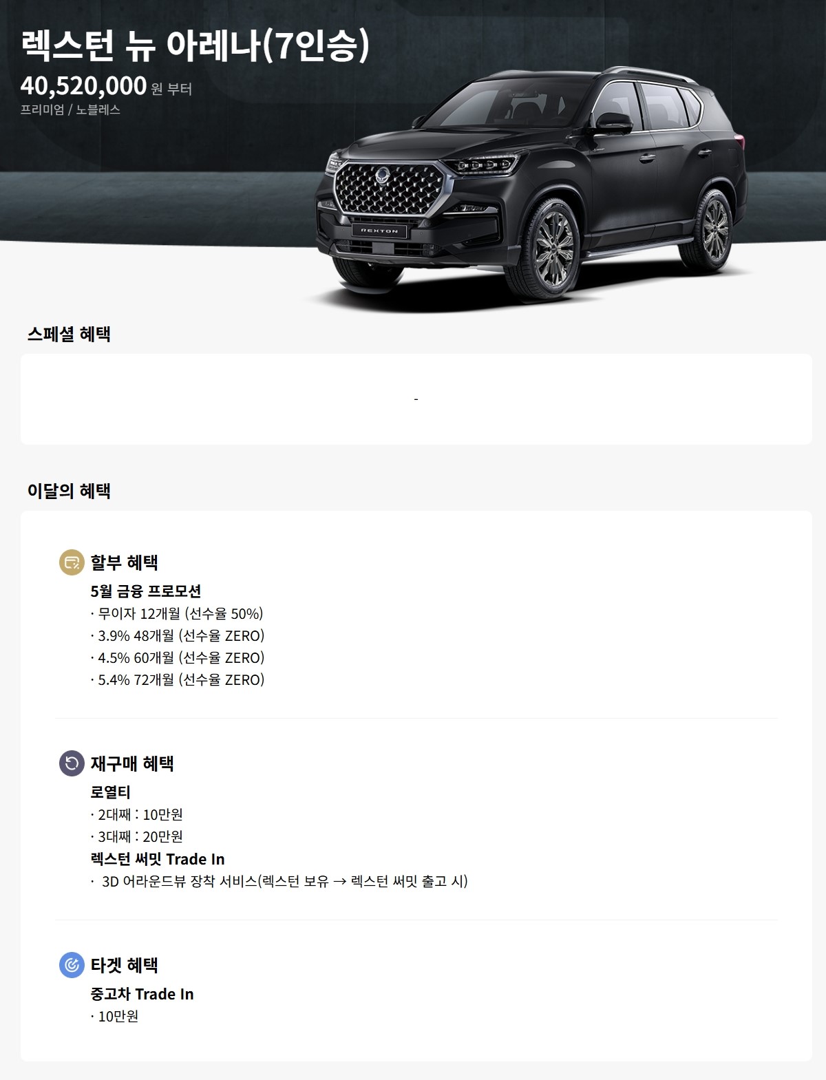 렉스턴도 요 몇 달은 프로모션 없이 조용한 모습입니다.